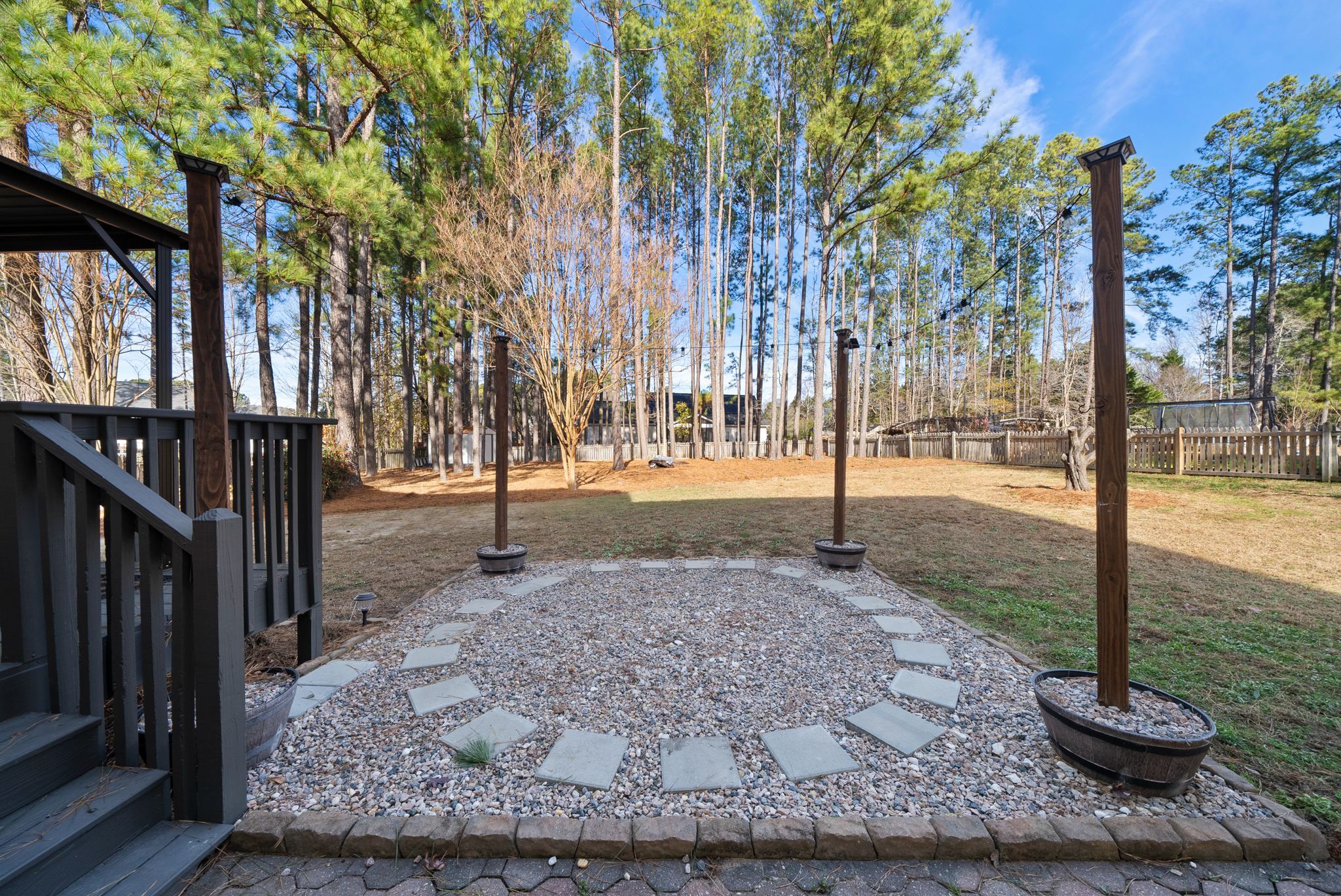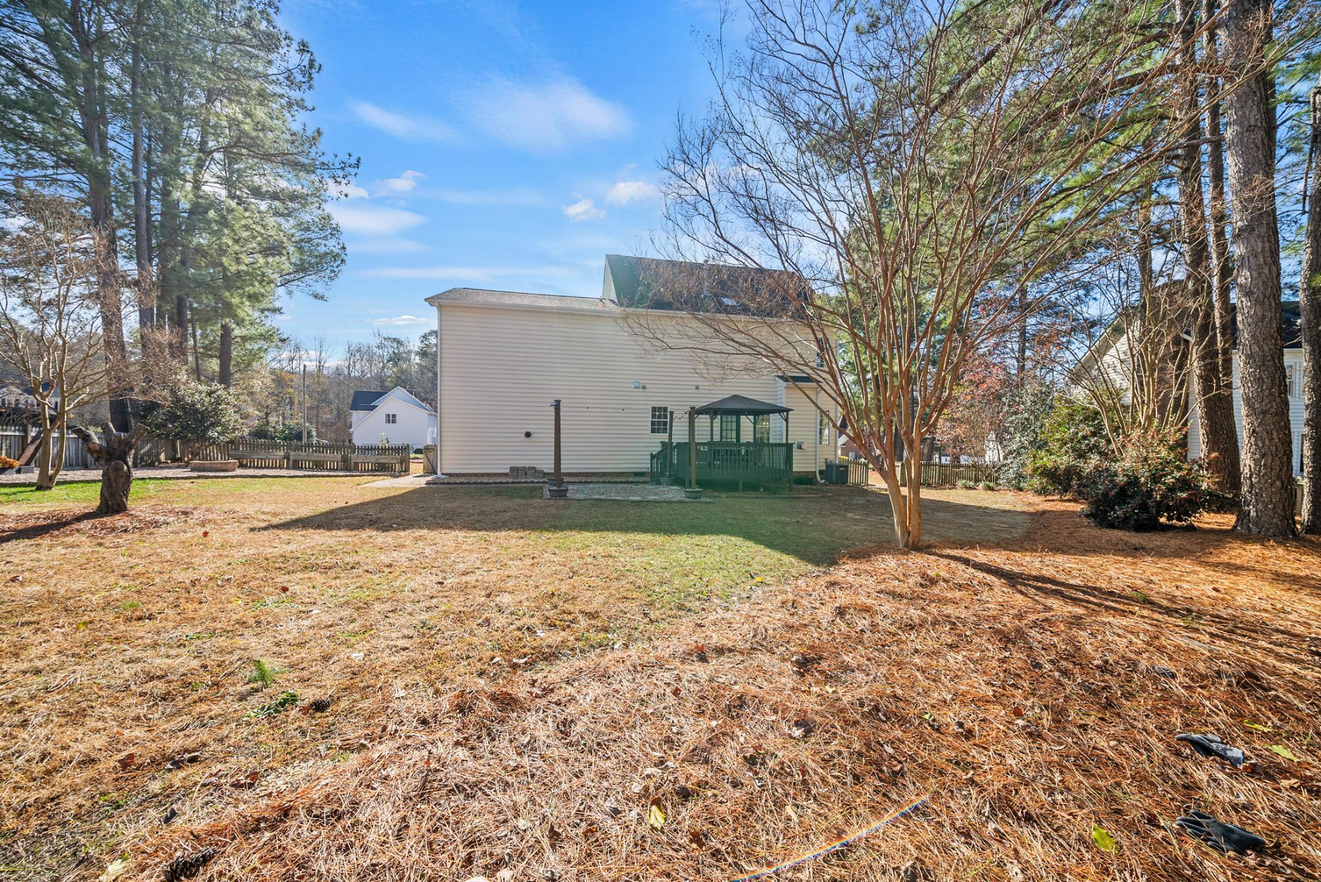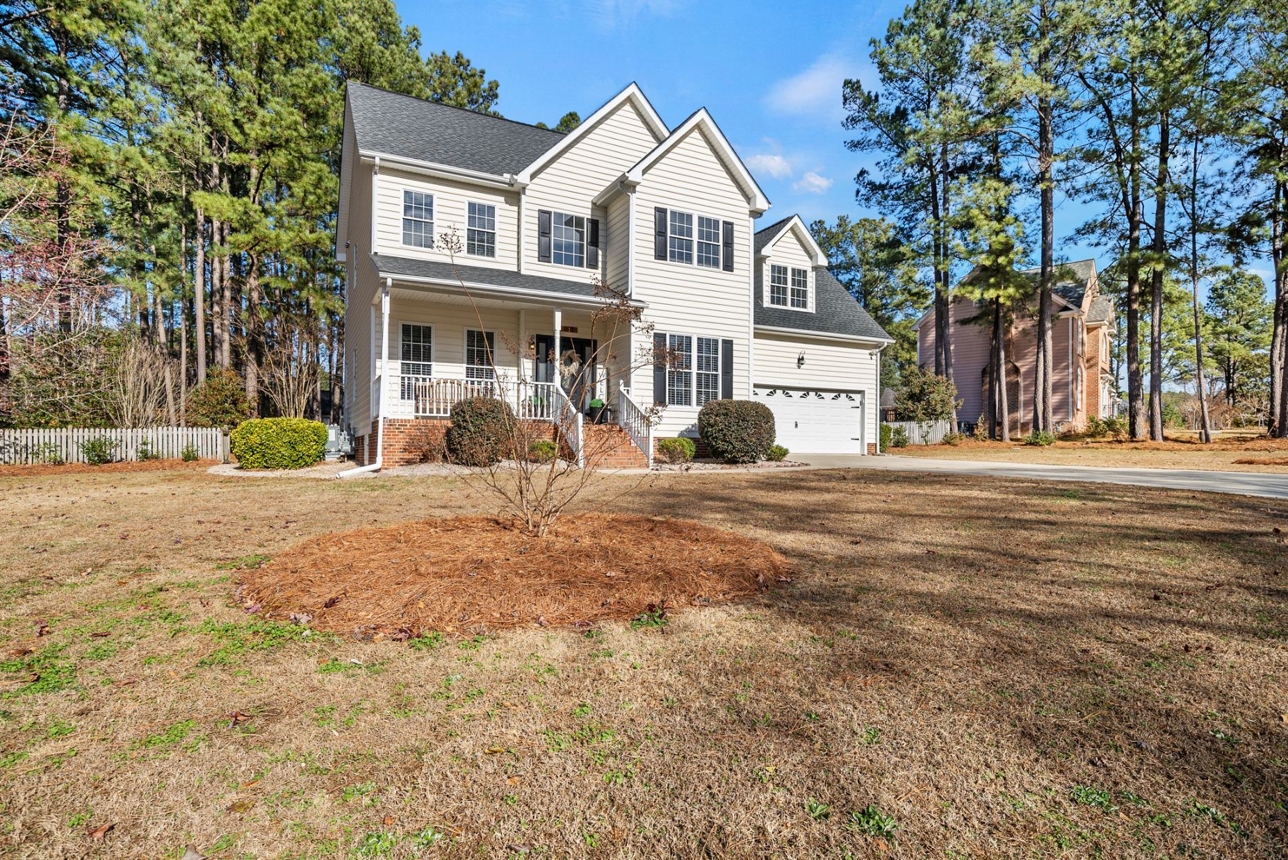 Beautifully updated home in convenient, commutable Knightdale location! Welcoming rocking chair front porch that sets the tone for comfortable living! Inside, the open floor plan is filled with natural light and showcases thoughtful finishes, including hardwood flooring, crown and chair molding, and seamless flow between the living, dining, and kitchen areas creating an ideal space for everyday living and entertaining. Upgraded kitchen offers an abundance of cabinetry, quartz countertops, stainless steel appliances, a large island with seating, and a spacious pantry with shelving for exceptional storage. First-floor office provides a private and functional space perfect for remote work or study. The primary suite is a relaxing retreat featuring a soaking tub, separate shower, and a generously sized walk-in closet. Large bonus room with closet space offers flexibility as a fourth bedroom, media room, or playroom. Outdoor living is equally impressive with a tree-lined backyard, a back deck with gazebo coverage, a cozy conversation pit accented by outdoor lighting, and a shed for additional storage—creating the perfect setting for relaxing or entertaining year-round.