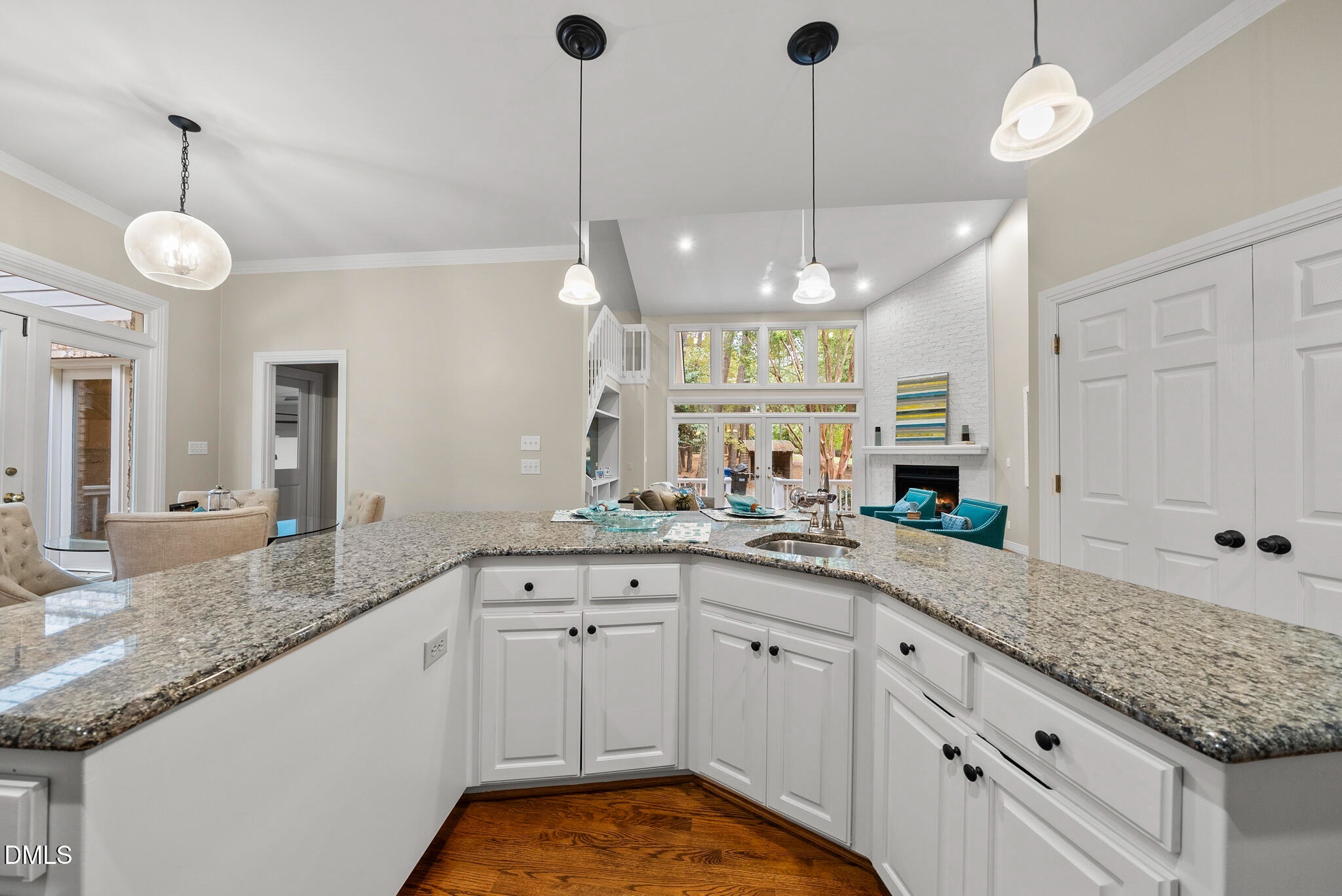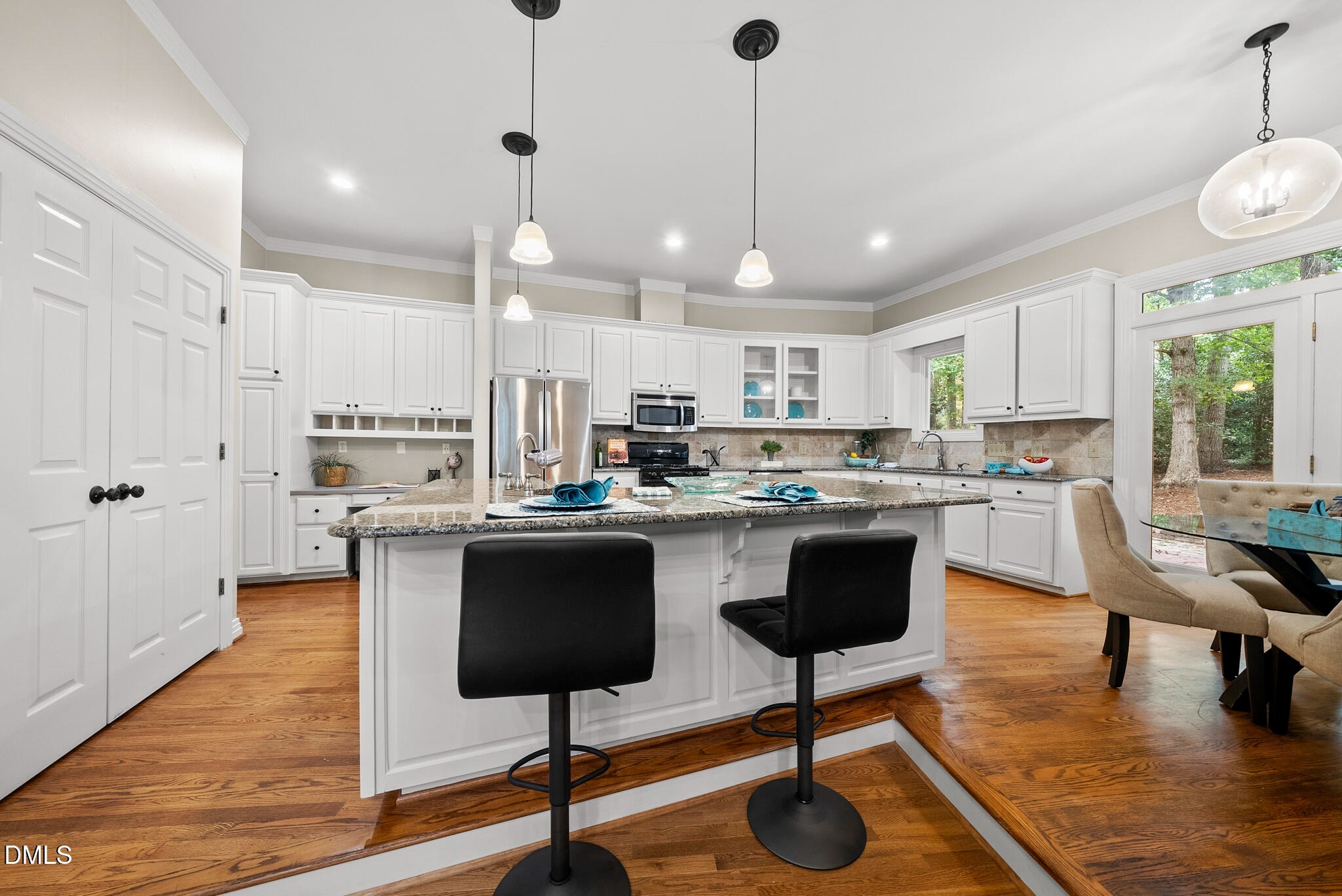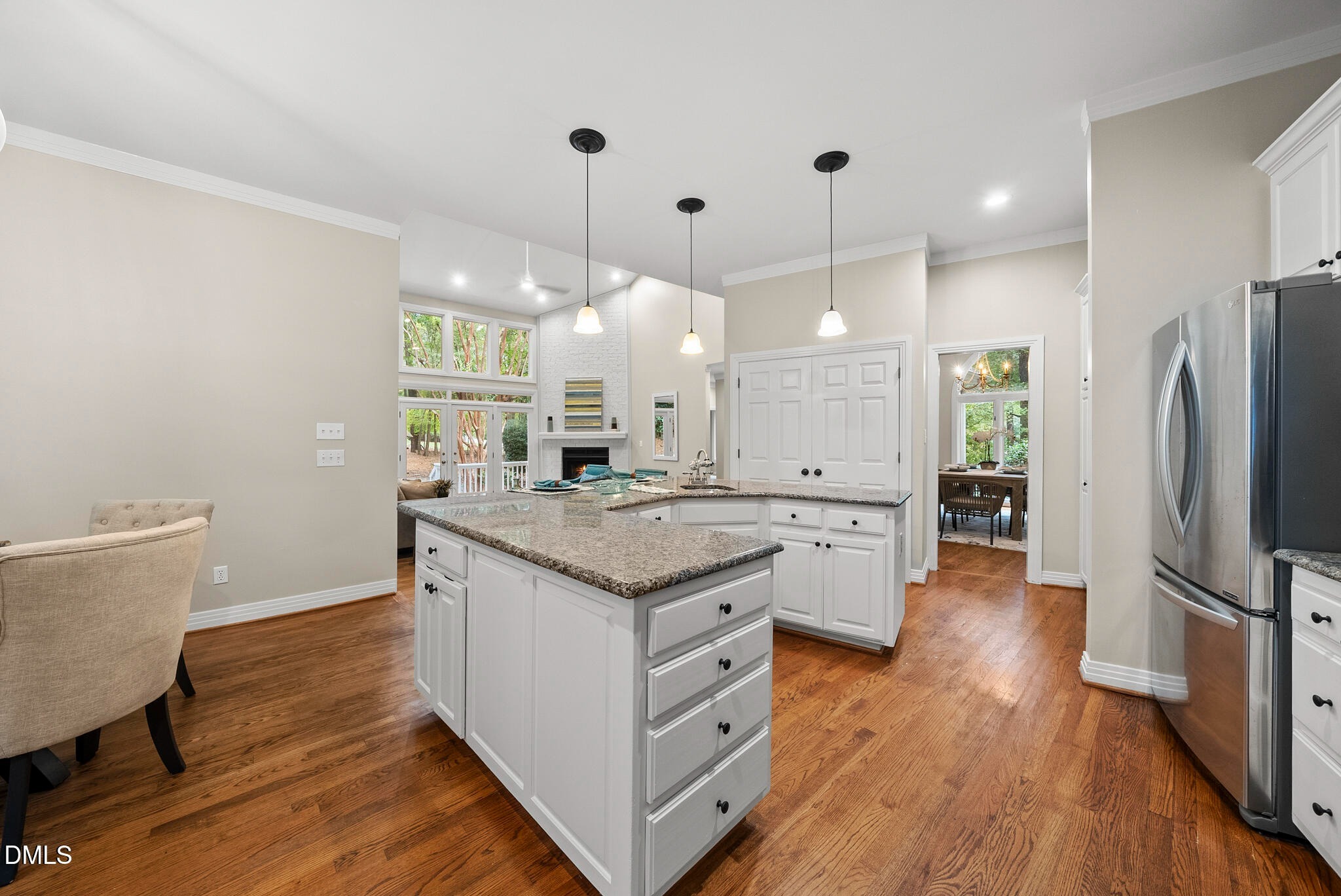 This stunning 3,900-square-foot home sits on a full acre, offering both space and privacy. At its center is an impressive kitchen with white cabinetry, granite countertops, and an oversized island perfect for cooking, gathering, and entertaining. The first-floor primary suite provides a peaceful retreat with a walk-in closet and a spacious ensuite featuring dual vanities, a soaking tub, and a separate shower. Three additional main-level bedrooms offer plenty of room for family or guests. The inviting family room is filled with natural light thanks to floor-to-ceiling windows and features a vaulted ceiling and cozy fireplace. A separate living area with built-ins opens directly to the backyard for seamless indoor-outdoor living. Upstairs, you’ll find an office, a bonus room suited for hobbies, and a flexible space paired with a modern bathroom with a walk-in shower. A walk-in attic adds even more storage options. Outside, the tree-lined backyard invites relaxation with ample room to play and a charming playhouse. A spacious three-car garage completes this exceptional property.