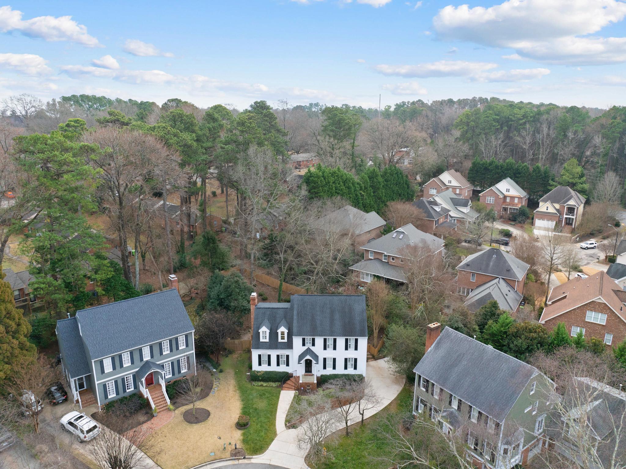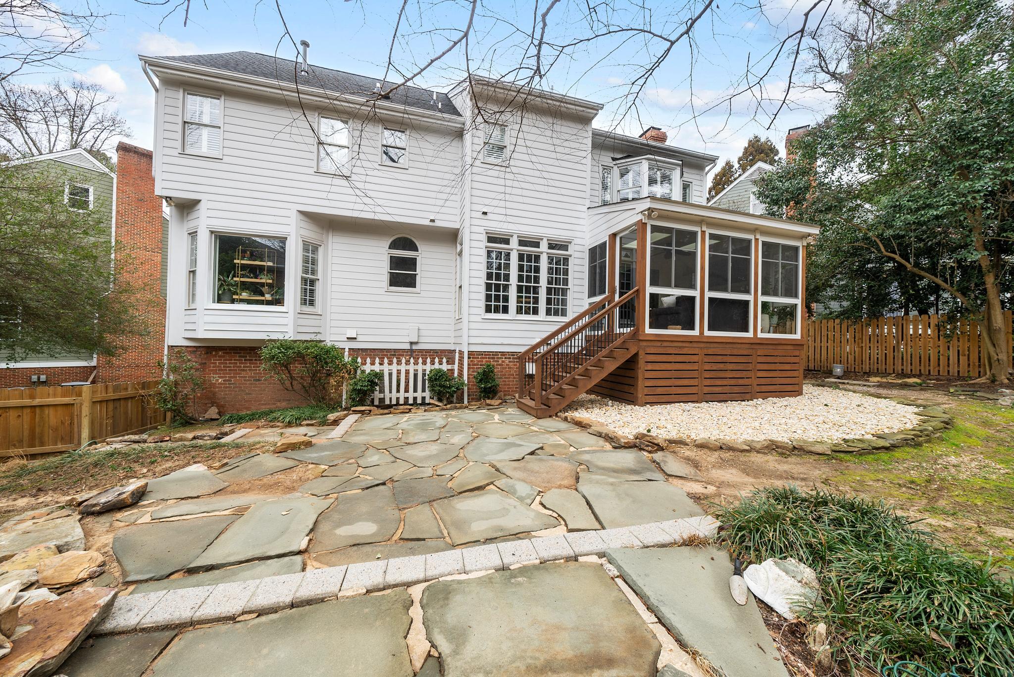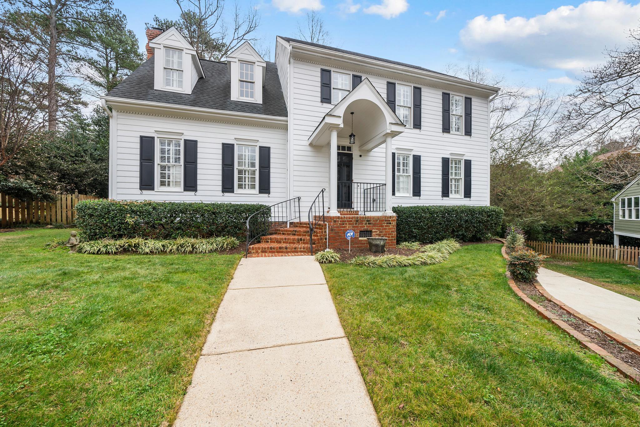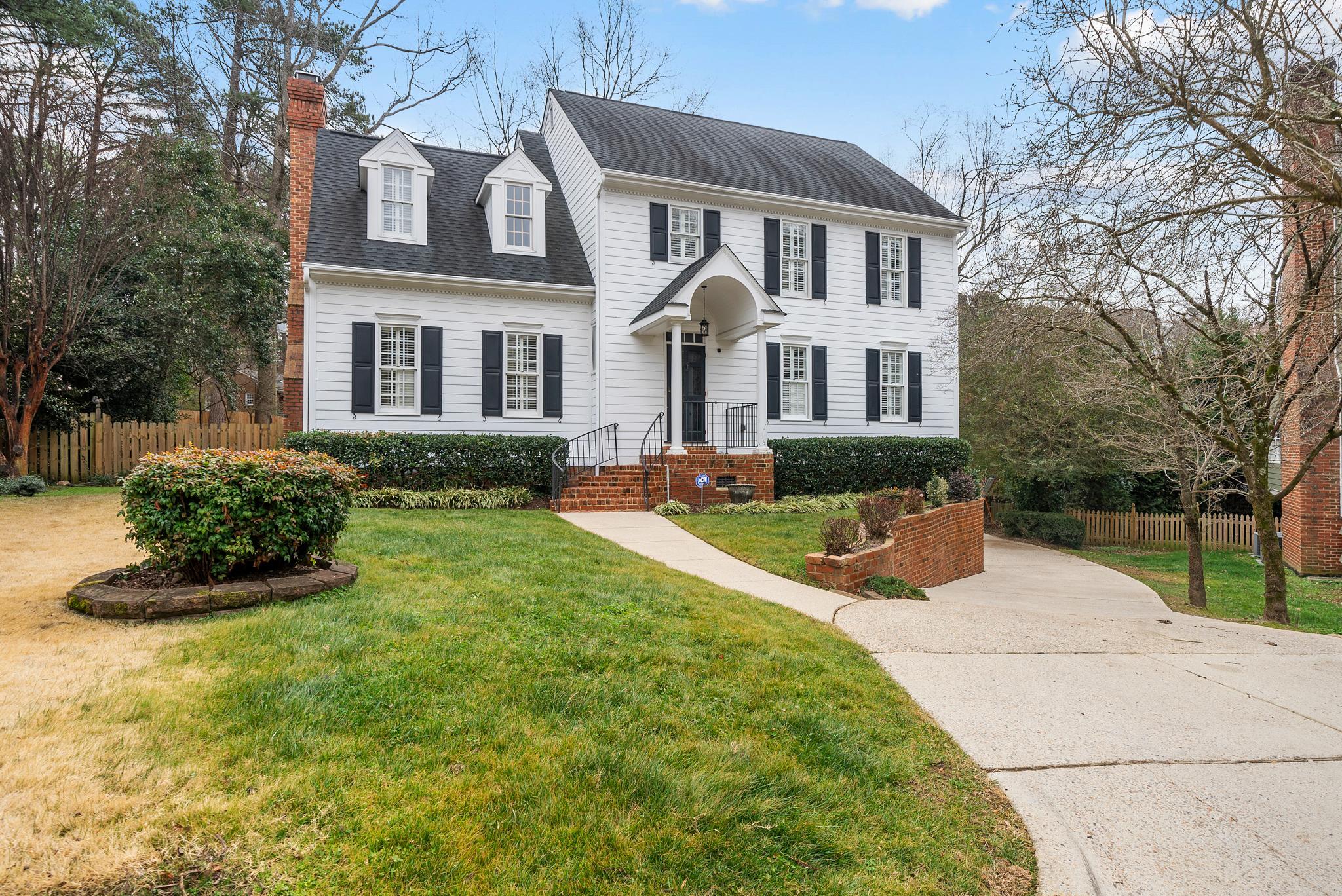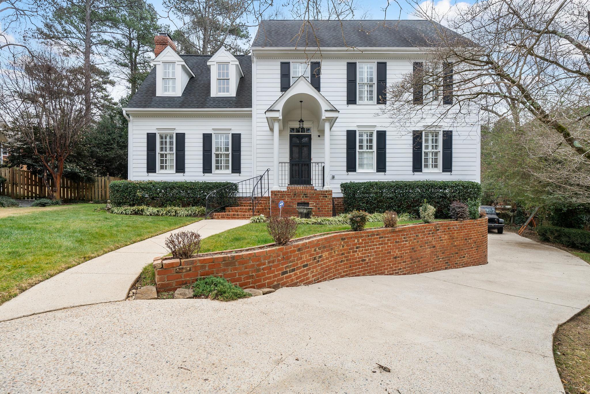 Beautiful home on quiet cul-de-sac inside the Raleigh beltline! This spacious home offers plenty of thoughtfully designed living space. The main level features hardwood floors and multiple areas for entertaining, including a living room, a family room with a classic brick fireplace, and a sunroom with its own fireplace overlooking the private, fenced backyard. The updated kitchen is bright and inviting with white cabinetry, quartz countertops, and stainless steel appliances, making it both stylish and functional. Upstairs, all four bedrooms are generously sized, highlighted by a large primary suite with a bay window and built-in bench, a walk-in closet, and an en suite bath with a dual vanity and a walk-in shower complete with two shower heads and a bench. A side-entry garage connects to a finished basement rec room, providing flexible space ideal for storage, a workshop, or hobbies. With 4 bedrooms, 2.5 bathrooms, and a private setting, this home combines comfort, functionality, and an unbeatable inside-the-beltline location.