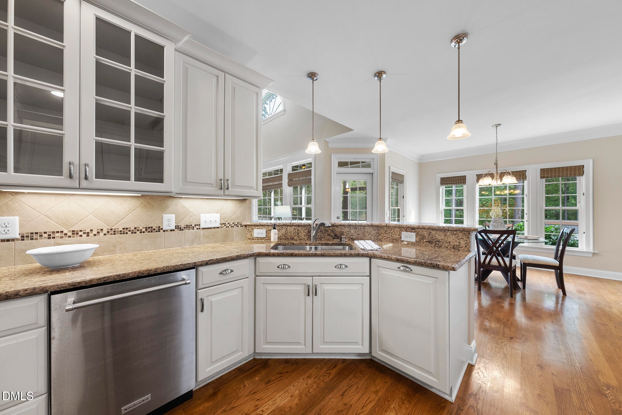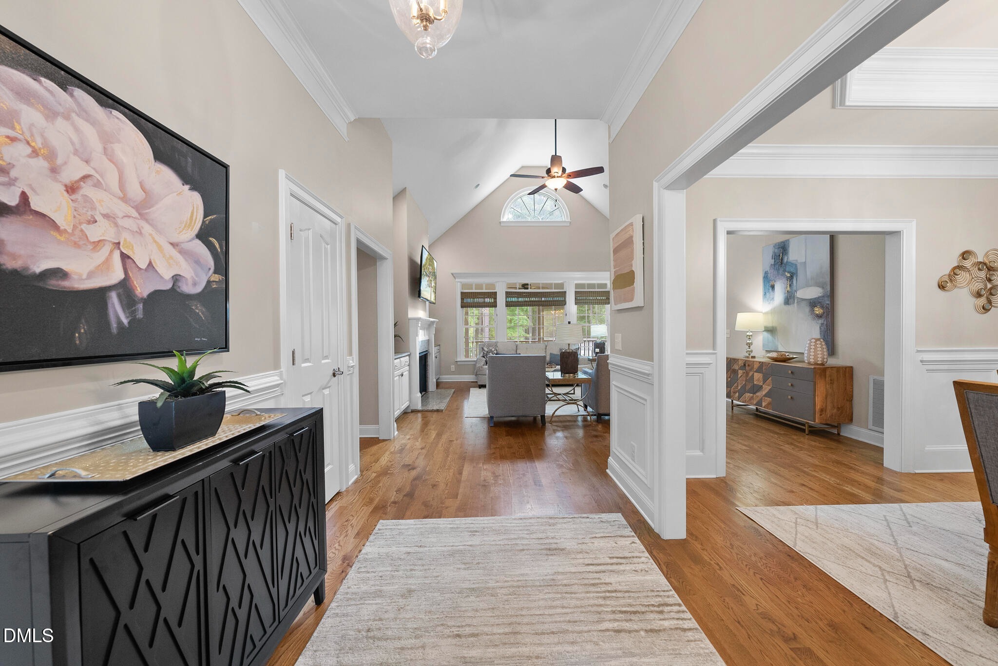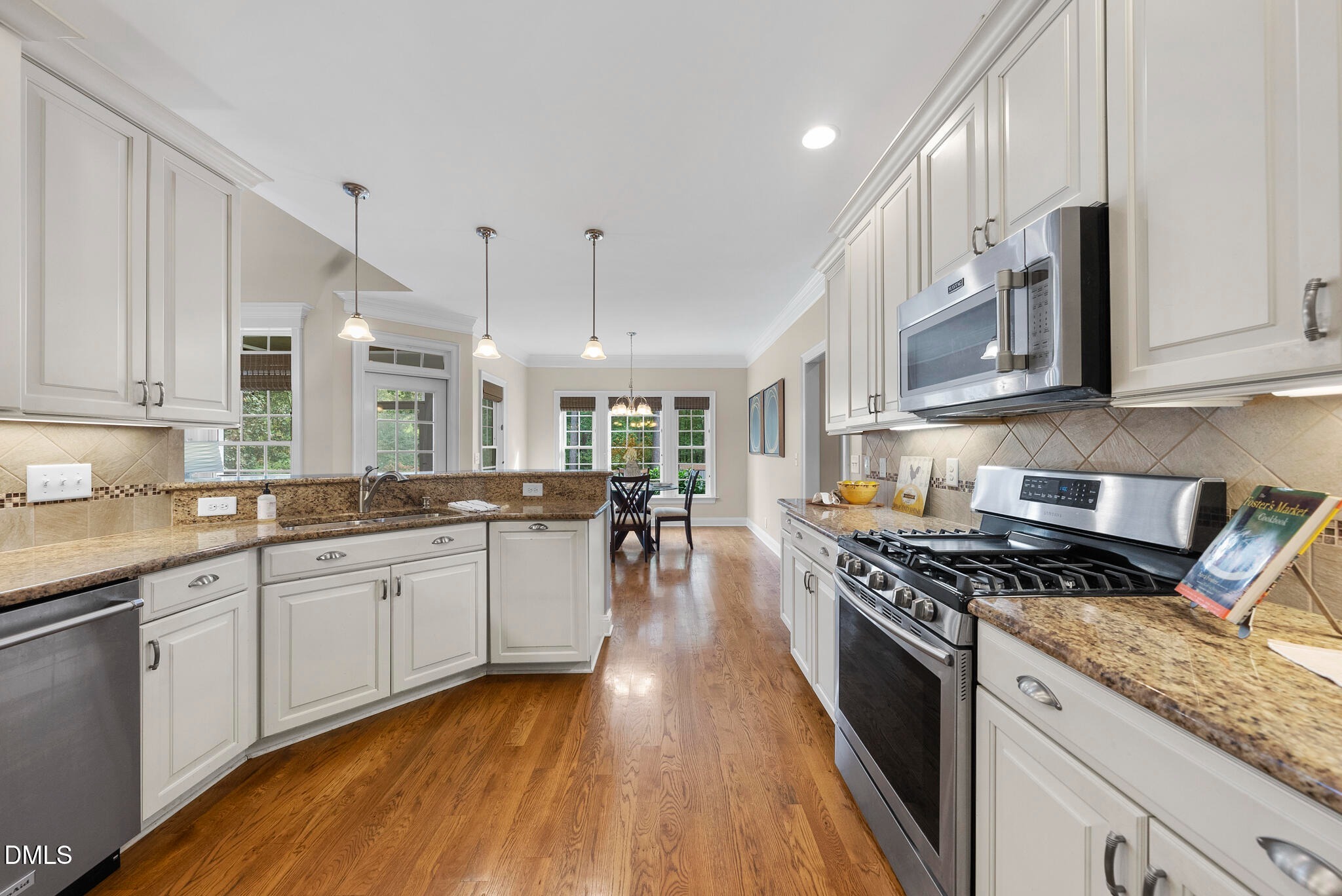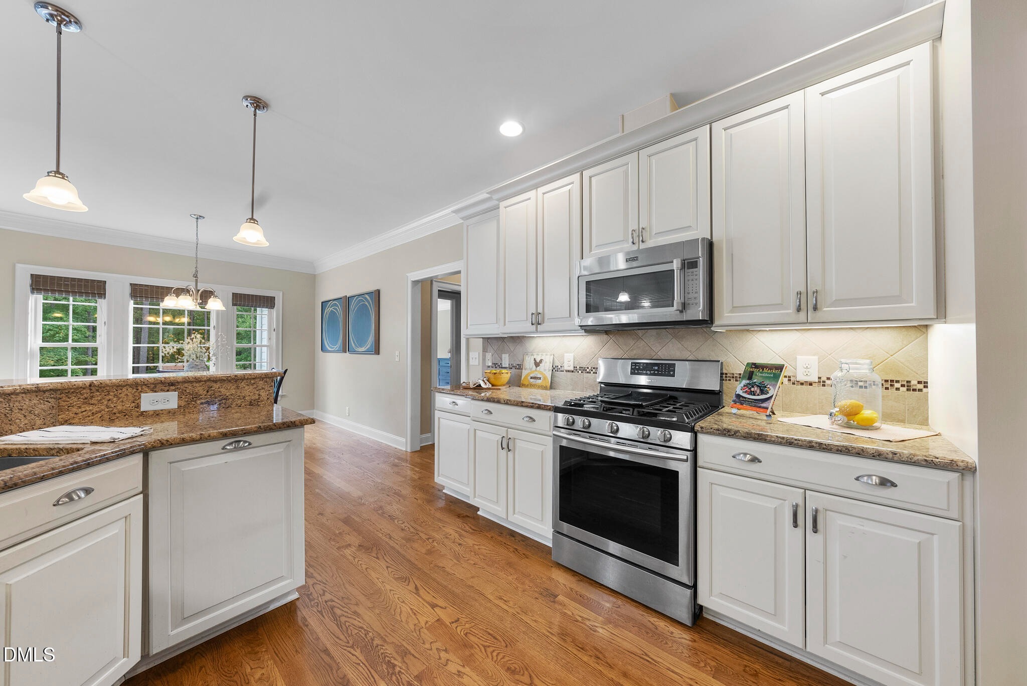 This inviting 2,600-square-foot ranch with a bonus room offers the ease of single-level living along with the versatility of an upstairs flex space and a walk-in attic—perfect for storage or future expansion. The bright, open kitchen features granite countertops, stainless steel appliances, and a convenient pantry. An elegant formal dining room with wainscoting and a spacious breakfast nook provide flexible dining options. Beautiful hardwood floors flow throughout the living room, where tall ceilings and a cozy fireplace create a warm, welcoming atmosphere. The owner’s suite is a relaxing retreat, featuring a luxurious en suite bath with a large shower, dual vanity, and generous walk-in closet. Nestled on nearly two serene acres, the property also includes a detached workshop ideal for hobbies or projects, a charming rocking-chair front porch, and a large back porch with ceiling fans—perfect for enjoying outdoor living year-round.