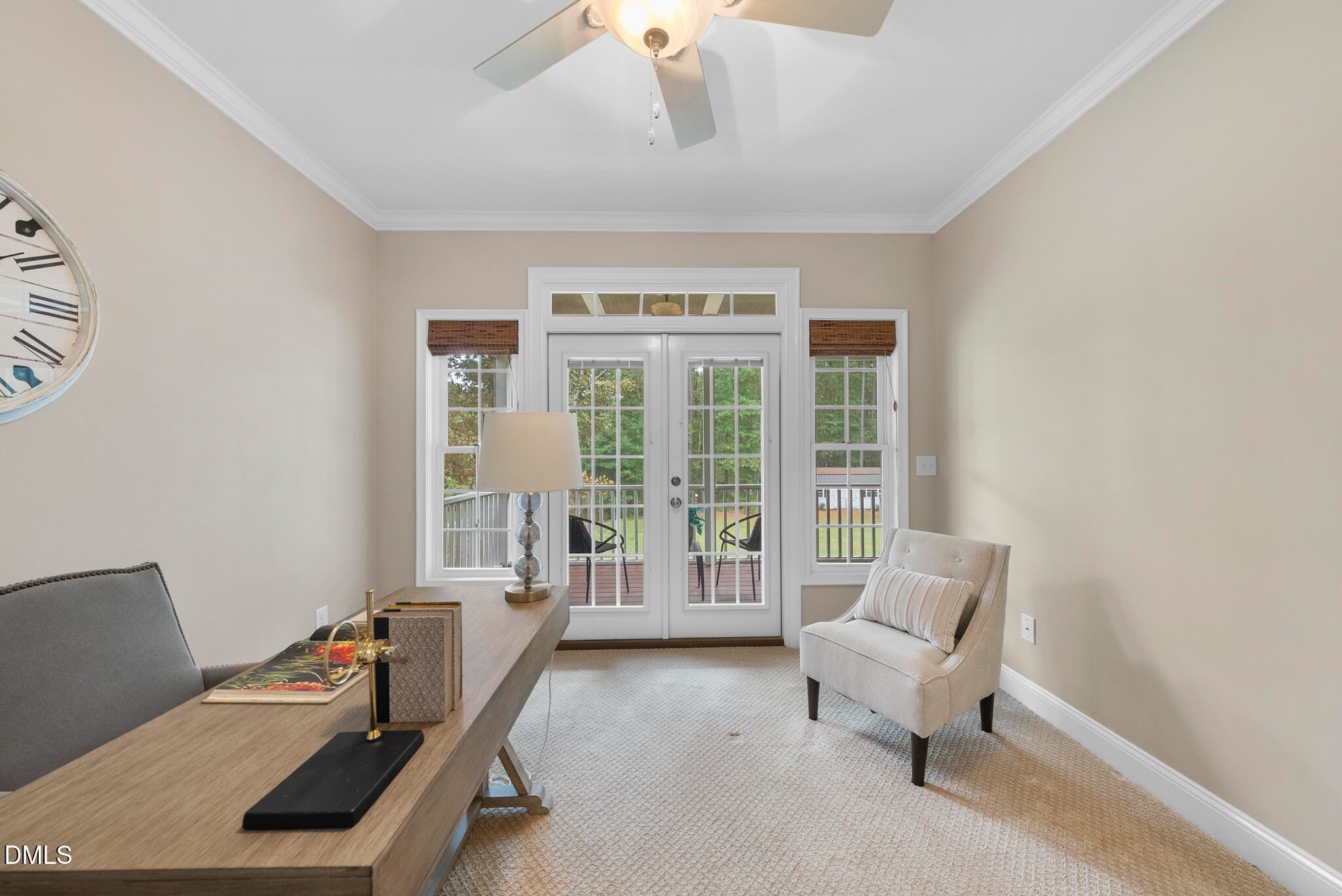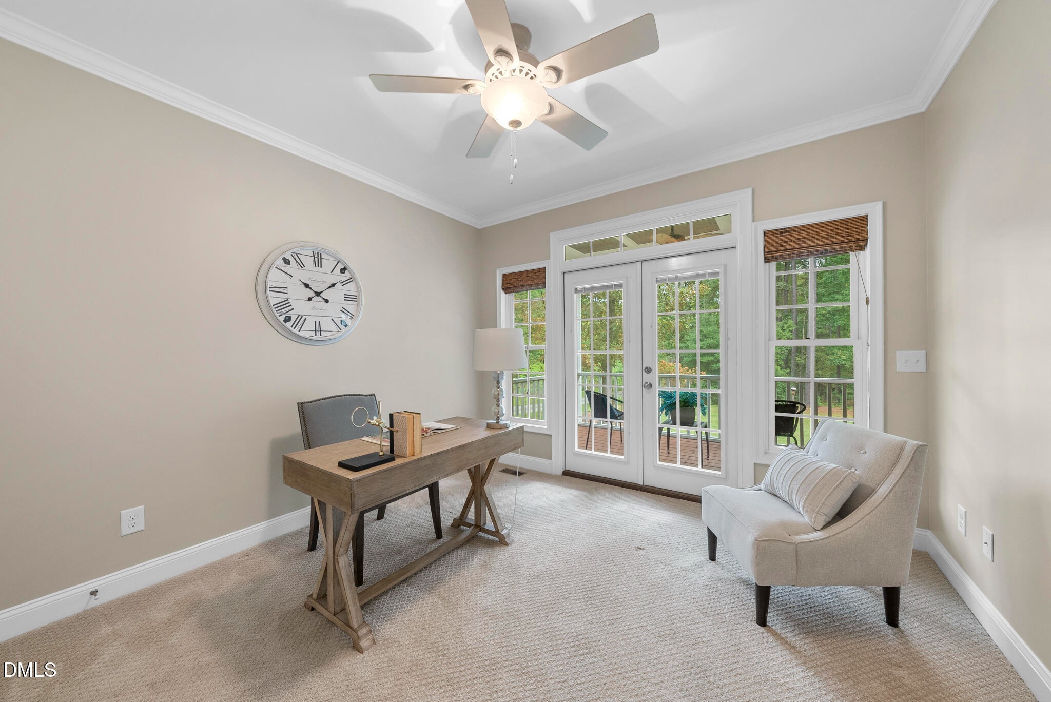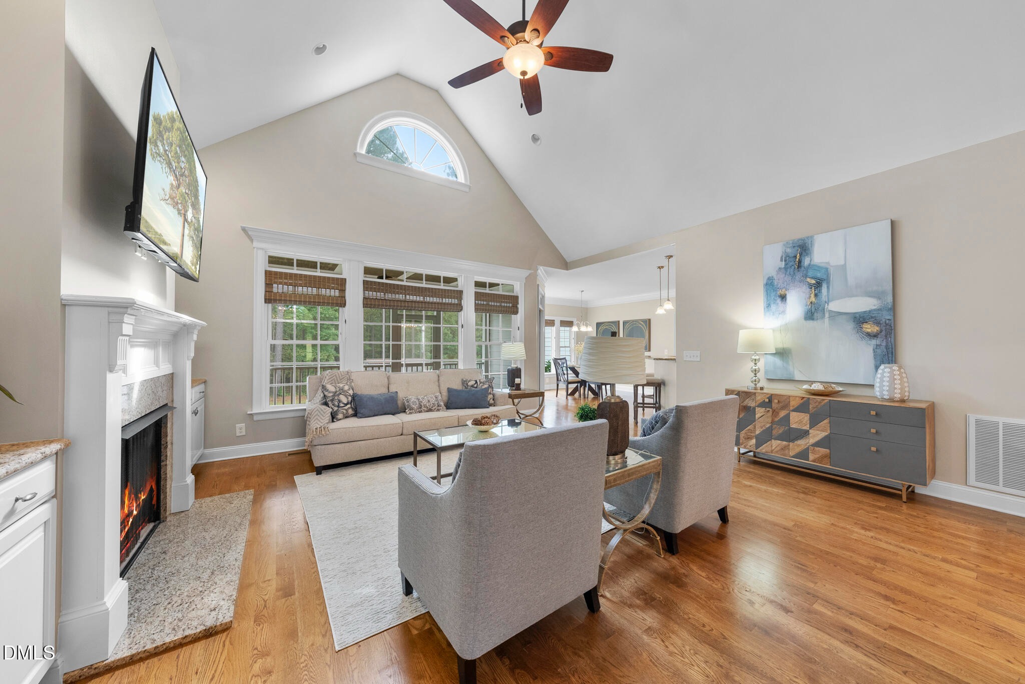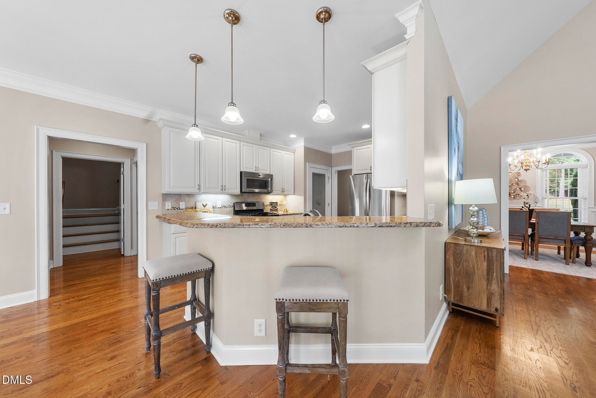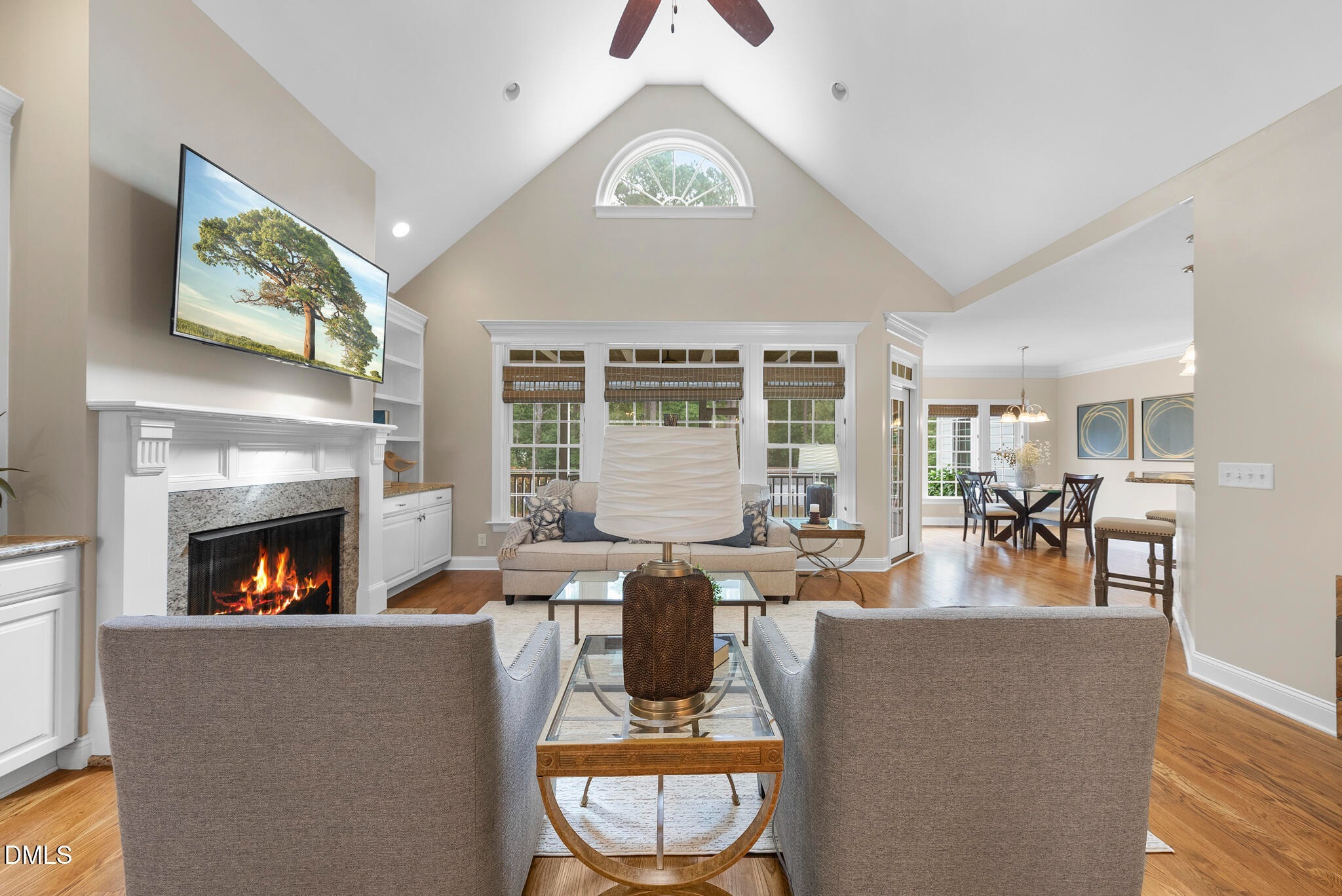 This inviting 2,600-square-foot ranch with a bonus room offers the ease of single-level living along with the versatility of an upstairs flex space and a walk-in attic—perfect for storage or future expansion. The bright, open kitchen features granite countertops, stainless steel appliances, and a convenient pantry. An elegant formal dining room with wainscoting and a spacious breakfast nook provide flexible dining options. Beautiful hardwood floors flow throughout the living room, where tall ceilings and a cozy fireplace create a warm, welcoming atmosphere. The owner’s suite is a relaxing retreat, featuring a luxurious en suite bath with a large shower, dual vanity, and generous walk-in closet. Nestled on nearly two serene acres, the property also includes a detached workshop ideal for hobbies or projects, a charming rocking-chair front porch, and a large back porch with ceiling fans—perfect for enjoying outdoor living year-round.