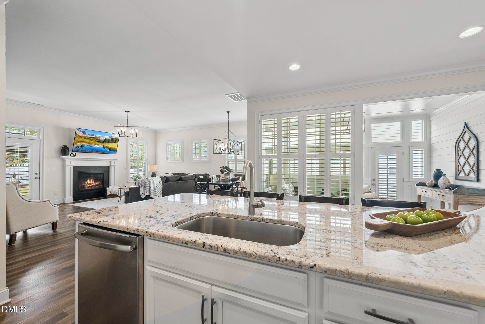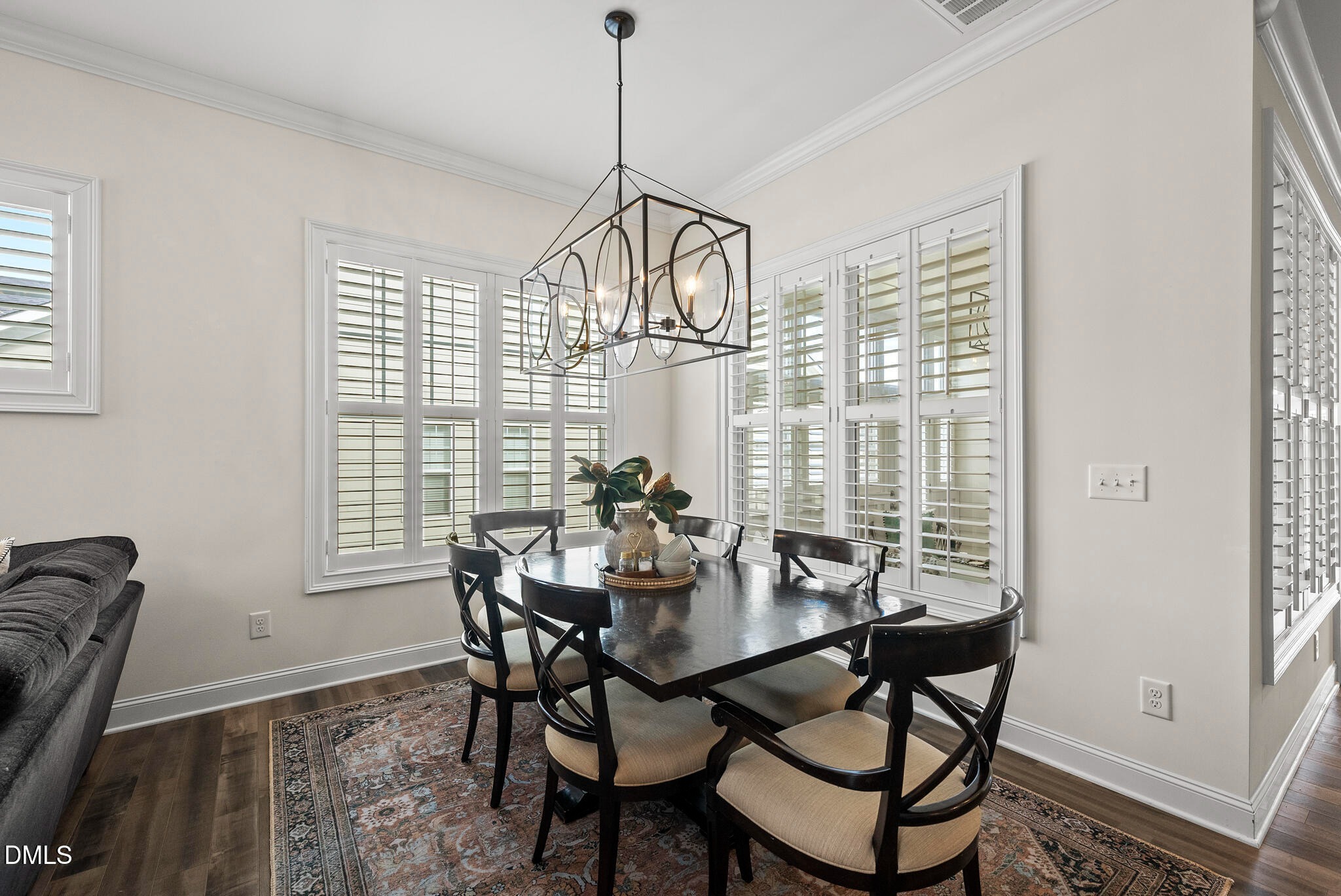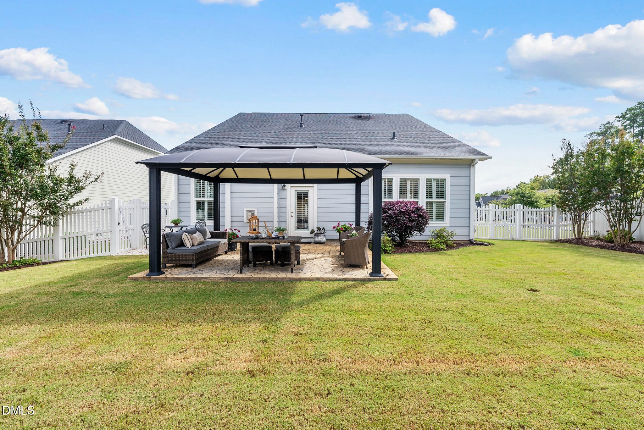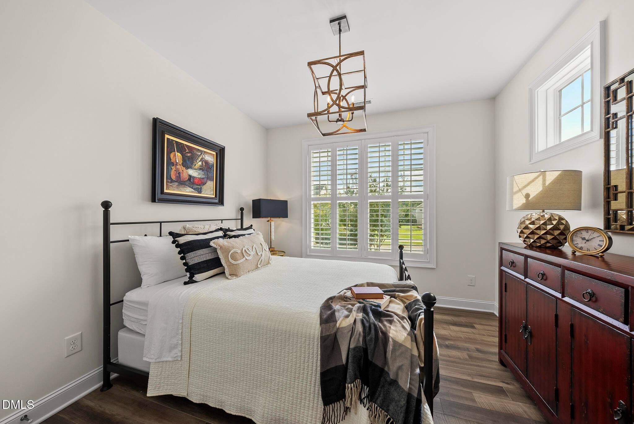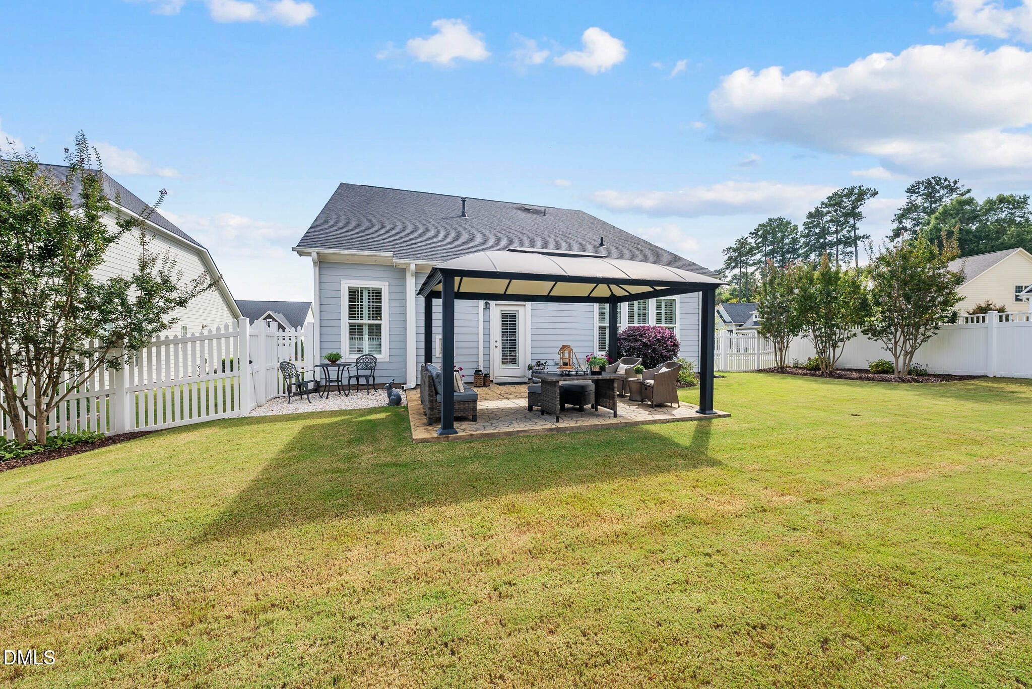 Welcome to this beautifully updated home in the desirable Traditions community of Wake Forest. Inside, an open and airy floor plan connects the family and dining rooms to the gourmet kitchen, where a large center island, granite countertops, stainless steel appliances, and custom cabinets with slide-out shelving create the perfect gathering space. A light-filled sunroom extends the living area and opens to the private backyard for year-round enjoyment. The spacious primary suite offers a relaxing retreat with tray ceilings, hardwood floors, and a spa-like bath featuring dual vanities, a walk-in closet, and a tiled aging-in-place shower. A first-floor guest bedroom with an adjacent full bath provides convenience and flexibility, while the upstairs loft and two additional bedrooms share a full bath. Outdoor living is equally impressive with a private patio, custom landscaping, retractable awning, 6-foot vinyl fence, and an in-ground sprinkler system. Paired with resort-style community amenities and a sought-after Wake Forest location, this home blends style, comfort, and everyday convenience.