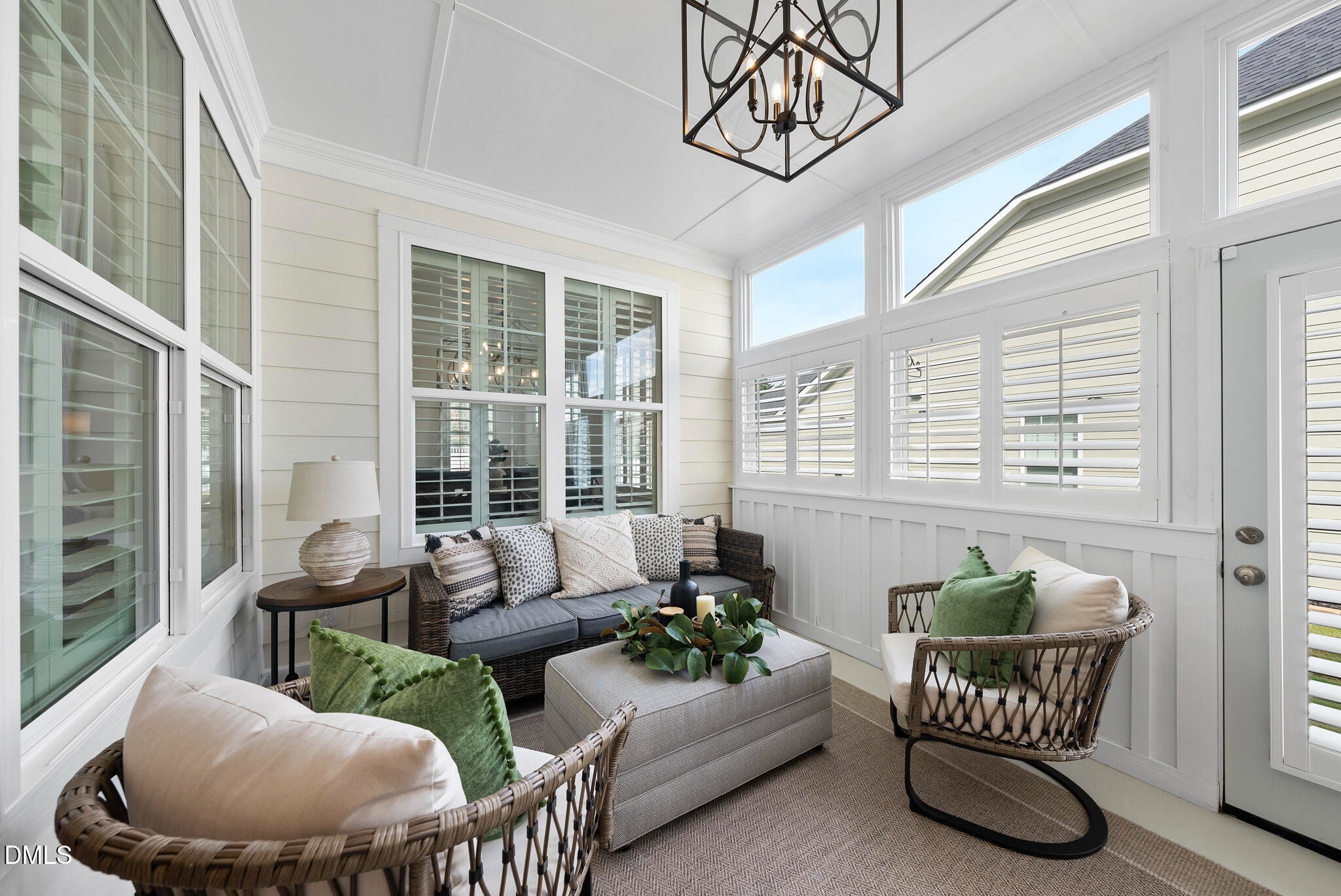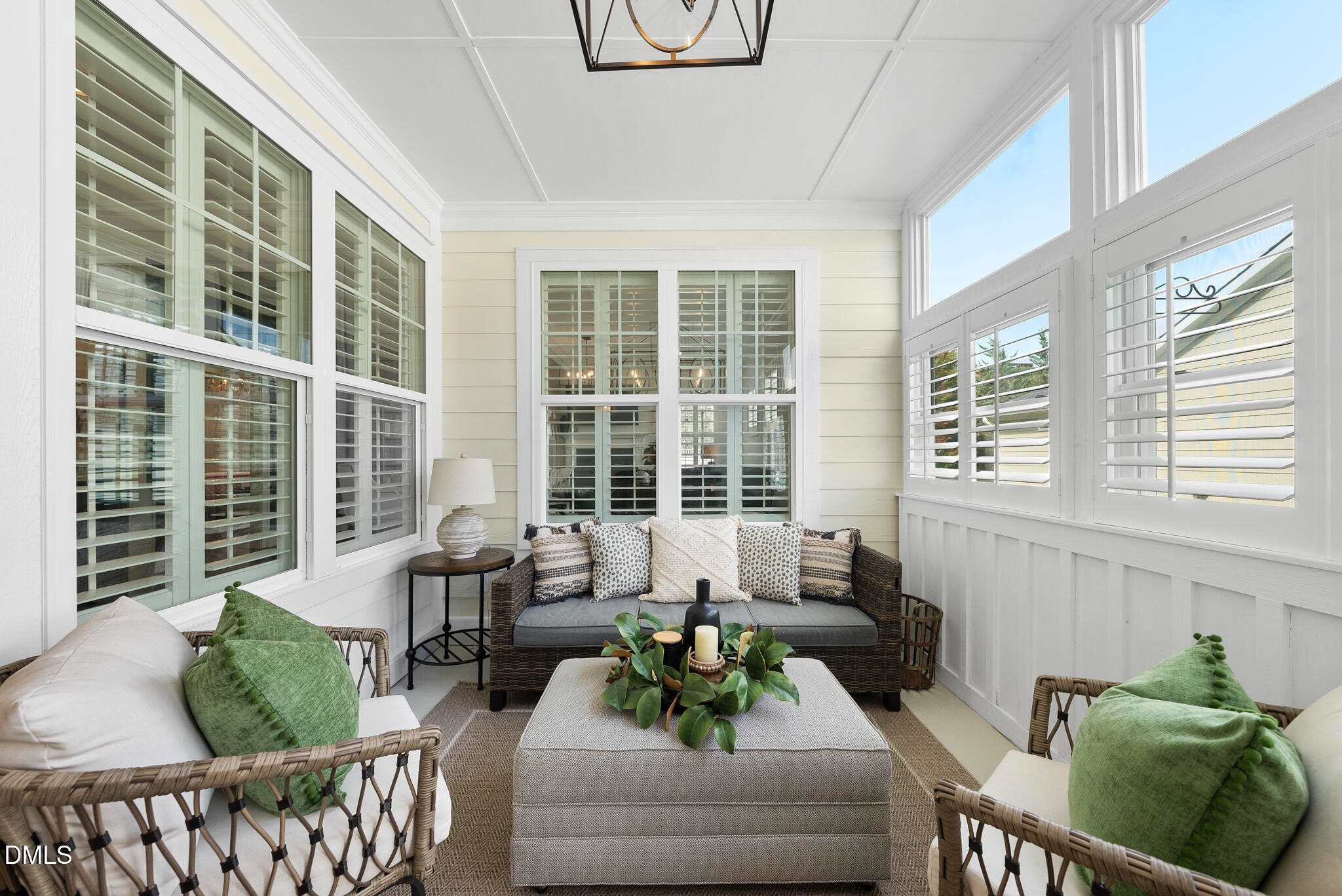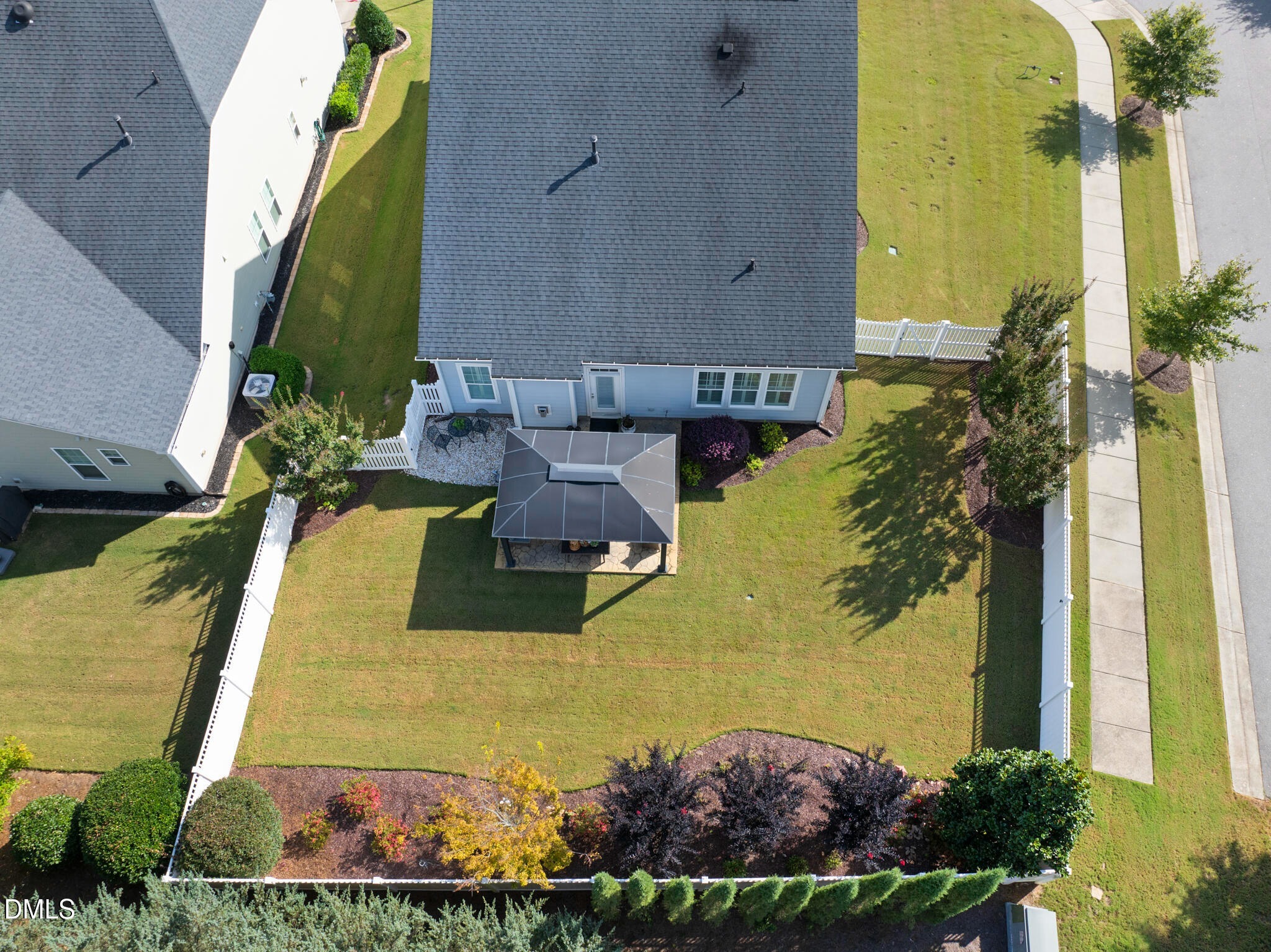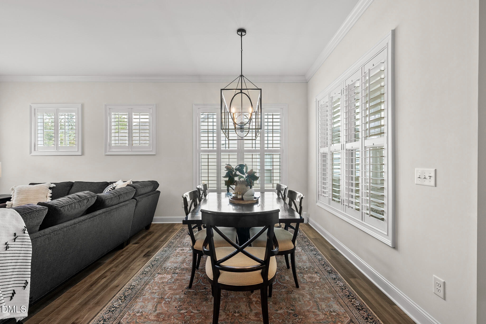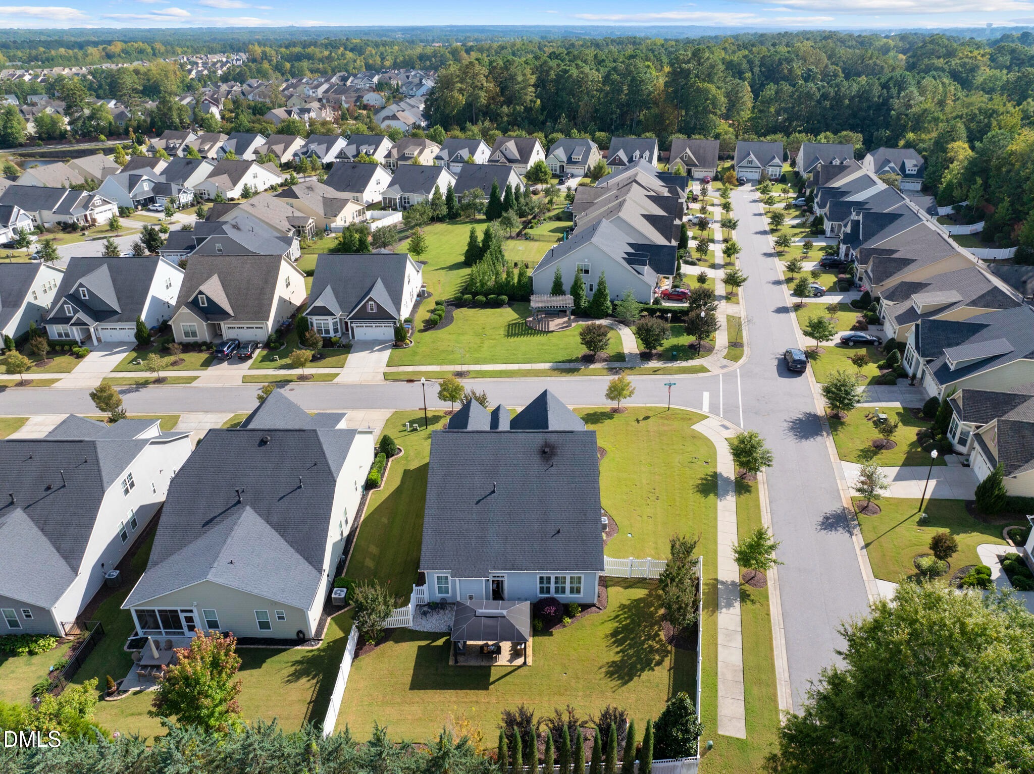 Welcome to this beautifully updated home in the desirable Traditions community of Wake Forest. Inside, an open and airy floor plan connects the family and dining rooms to the gourmet kitchen, where a large center island, granite countertops, stainless steel appliances, and custom cabinets with slide-out shelving create the perfect gathering space. A light-filled sunroom extends the living area and opens to the private backyard for year-round enjoyment. The spacious primary suite offers a relaxing retreat with tray ceilings, hardwood floors, and a spa-like bath featuring dual vanities, a walk-in closet, and a tiled aging-in-place shower. A first-floor guest bedroom with an adjacent full bath provides convenience and flexibility, while the upstairs loft and two additional bedrooms share a full bath. Outdoor living is equally impressive with a private patio, custom landscaping, retractable awning, 6-foot vinyl fence, and an in-ground sprinkler system. Paired with resort-style community amenities and a sought-after Wake Forest location, this home blends style, comfort, and everyday convenience.