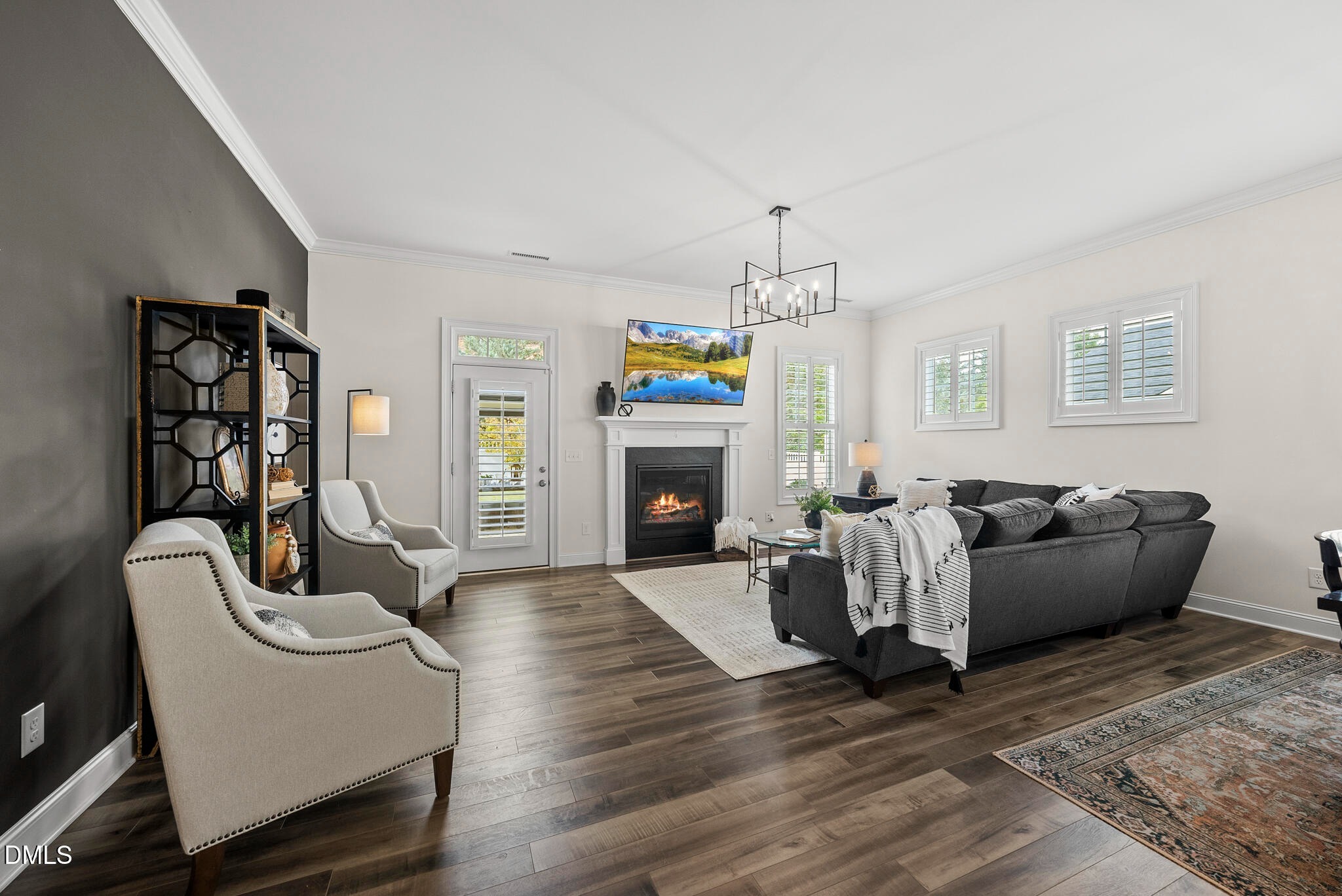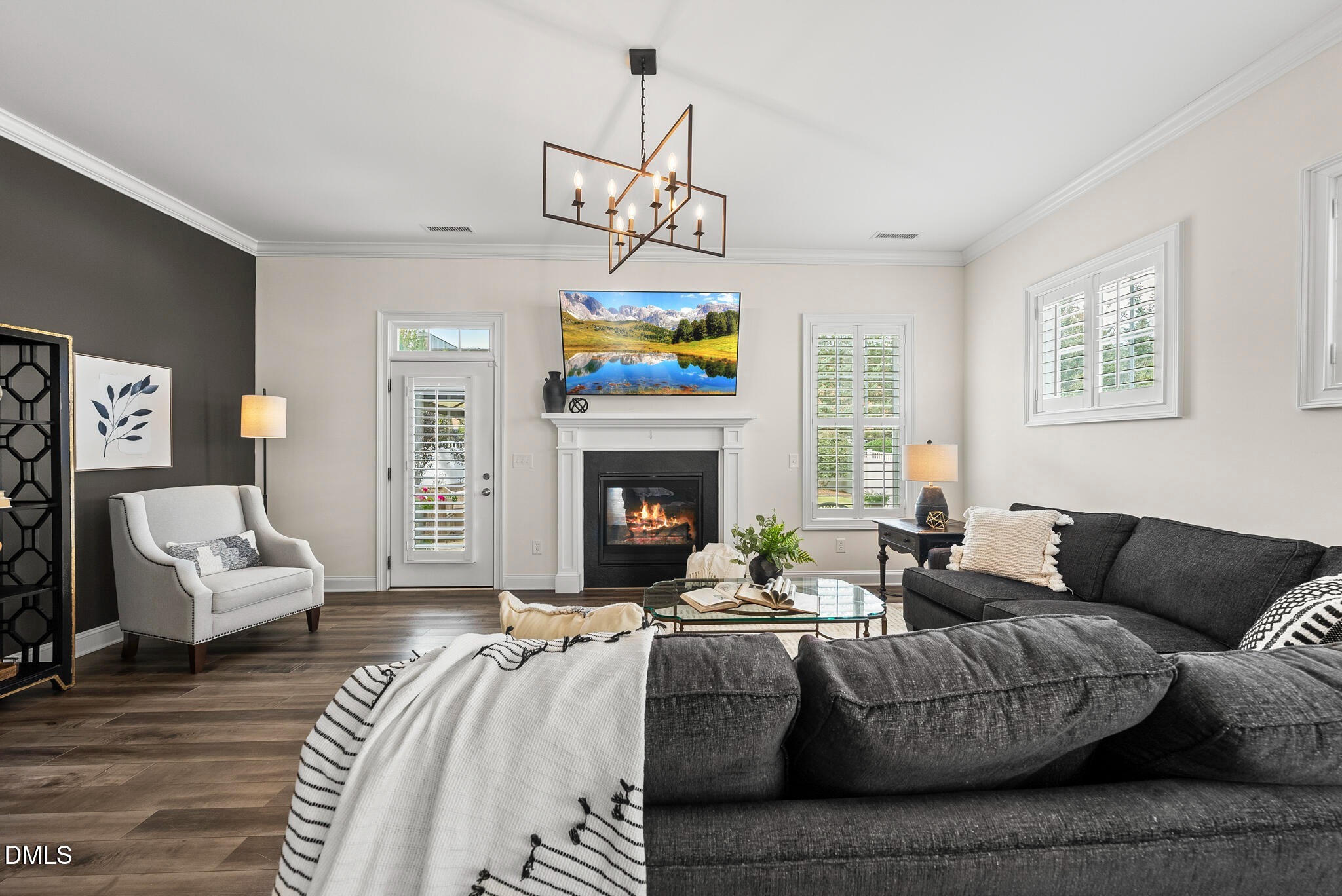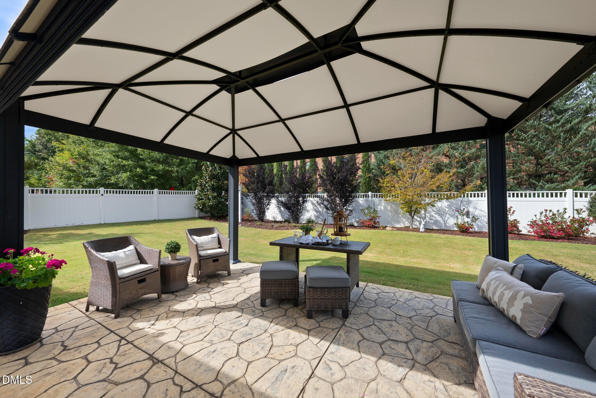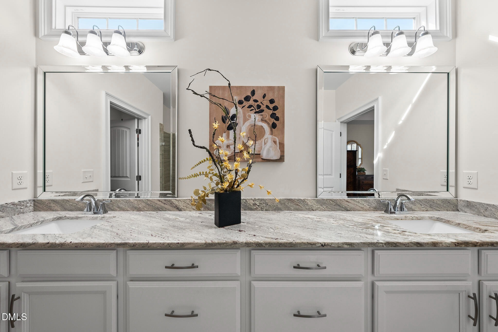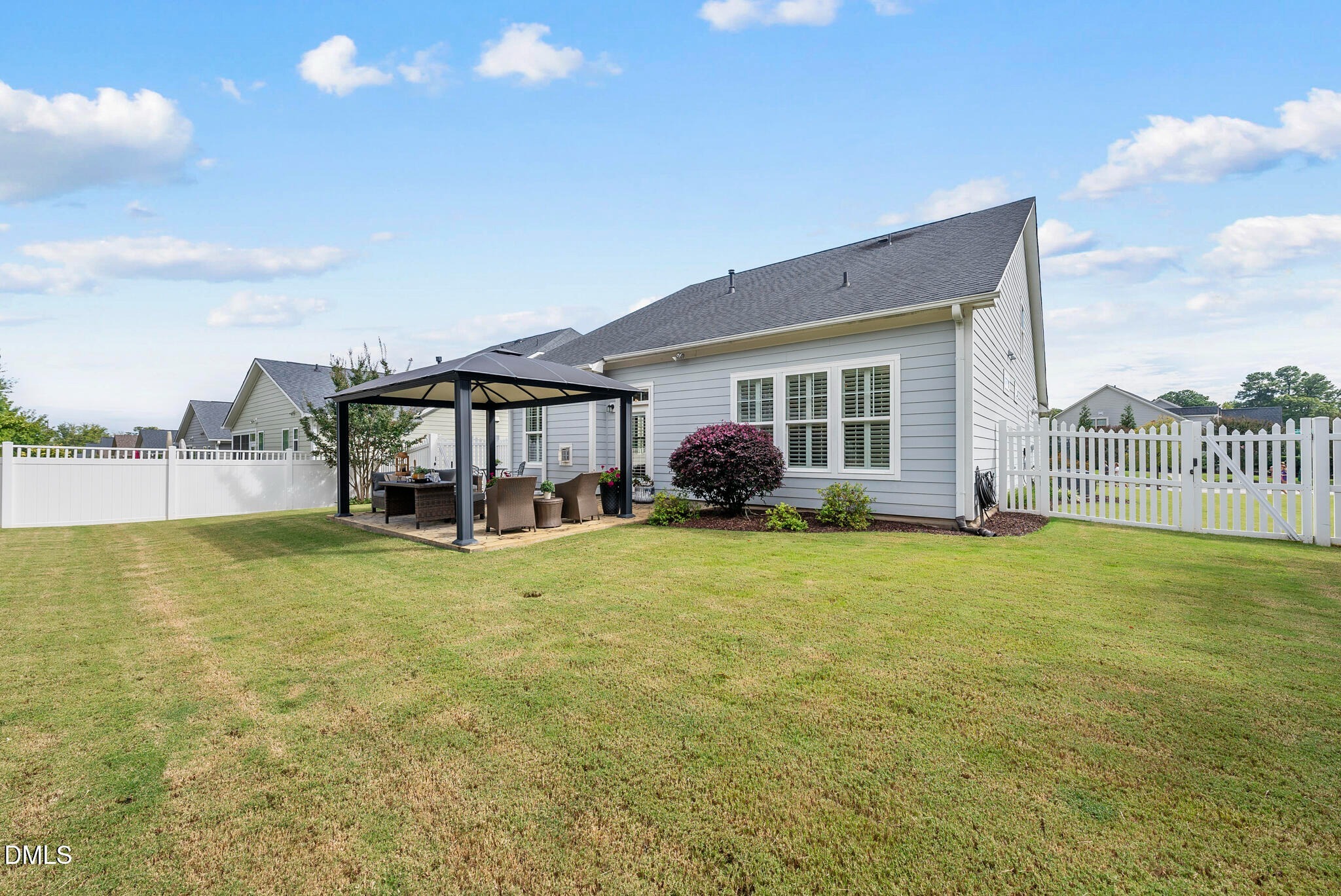 Welcome to this beautifully updated home in the desirable Traditions community of Wake Forest. Inside, an open and airy floor plan connects the family and dining rooms to the gourmet kitchen, where a large center island, granite countertops, stainless steel appliances, and custom cabinets with slide-out shelving create the perfect gathering space. A light-filled sunroom extends the living area and opens to the private backyard for year-round enjoyment. The spacious primary suite offers a relaxing retreat with tray ceilings, hardwood floors, and a spa-like bath featuring dual vanities, a walk-in closet, and a tiled aging-in-place shower. A first-floor guest bedroom with an adjacent full bath provides convenience and flexibility, while the upstairs loft and two additional bedrooms share a full bath. Outdoor living is equally impressive with a private patio, custom landscaping, retractable awning, 6-foot vinyl fence, and an in-ground sprinkler system. Paired with resort-style community amenities and a sought-after Wake Forest location, this home blends style, comfort, and everyday convenience.