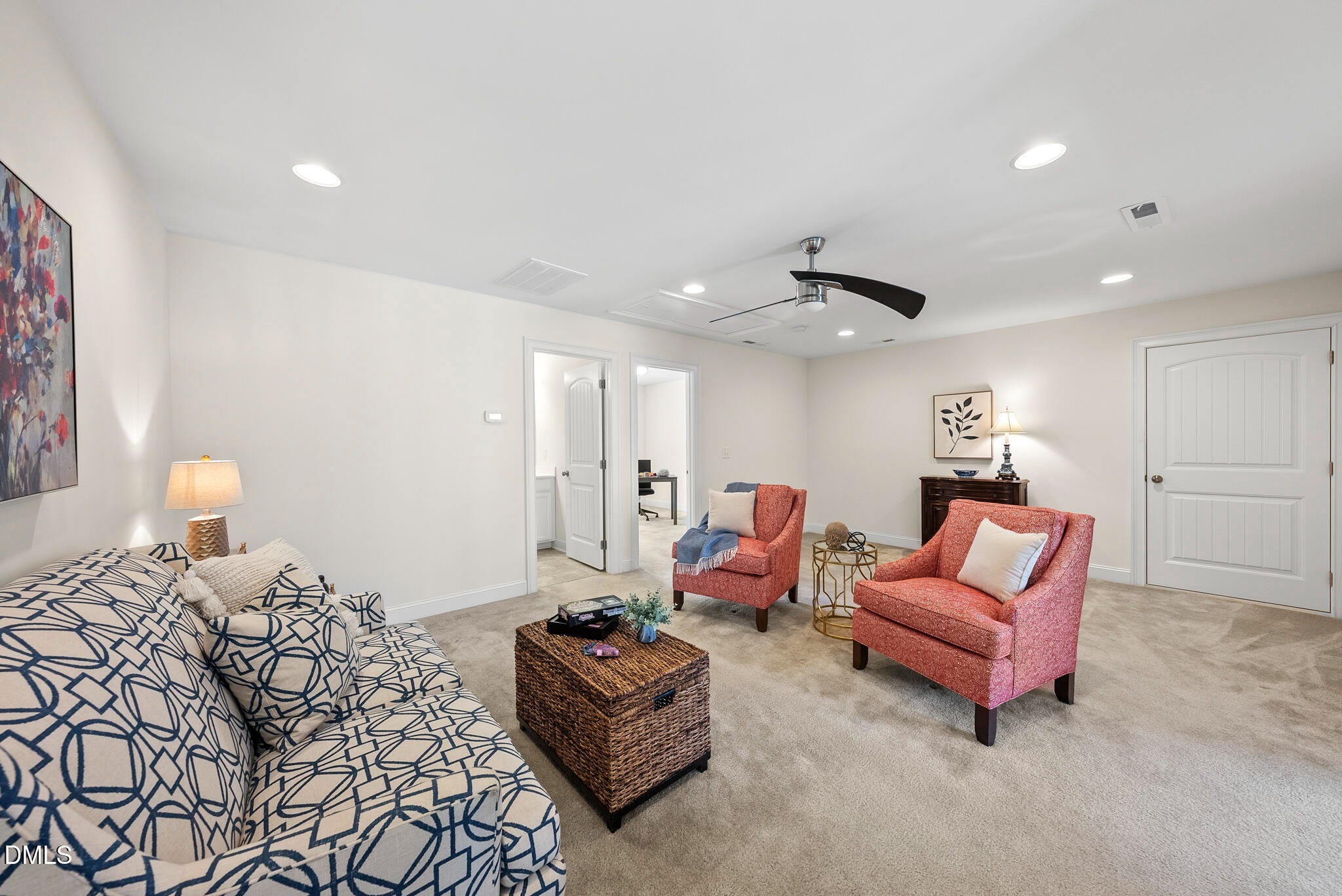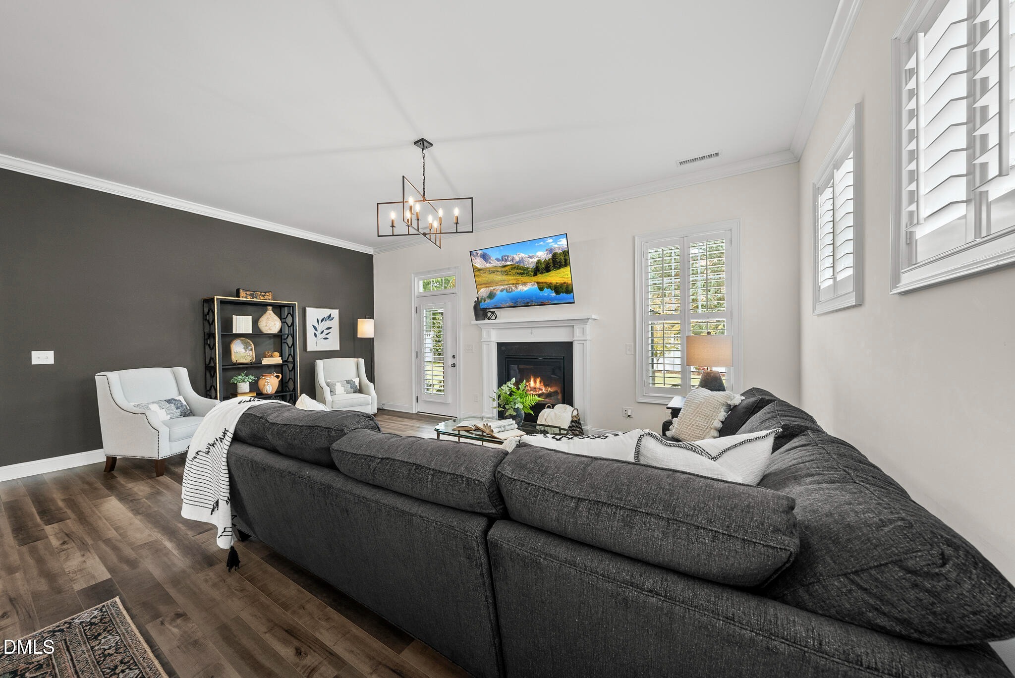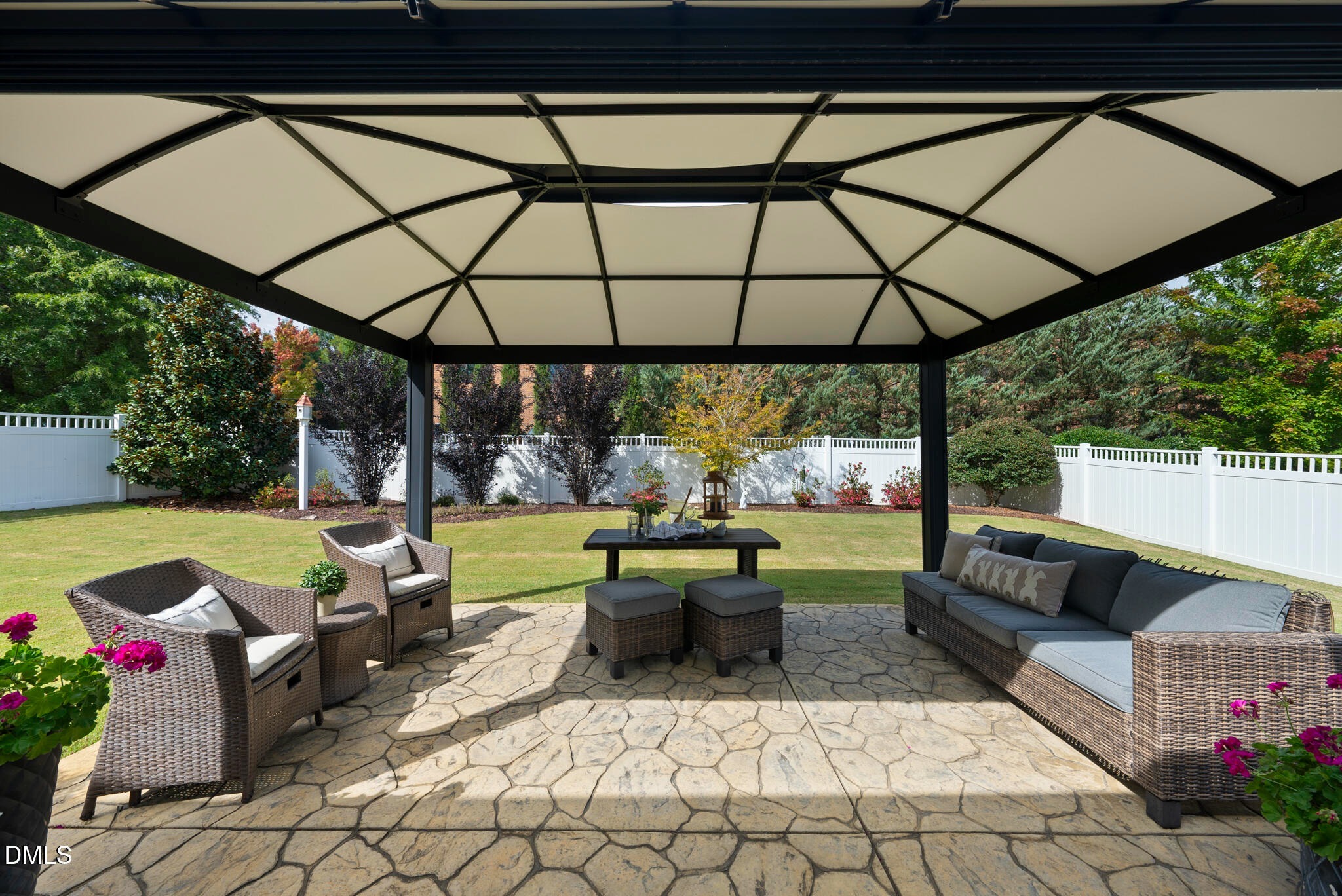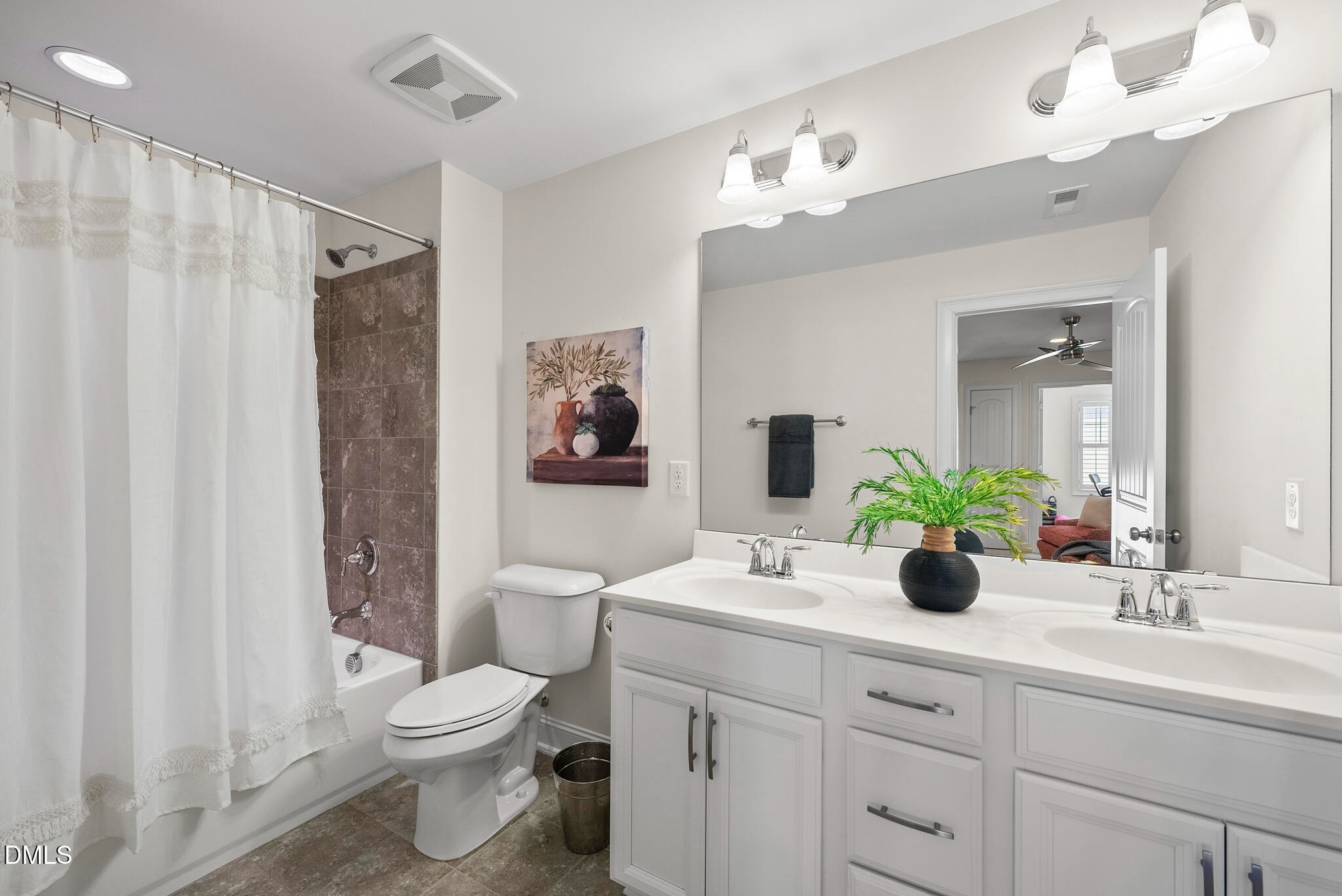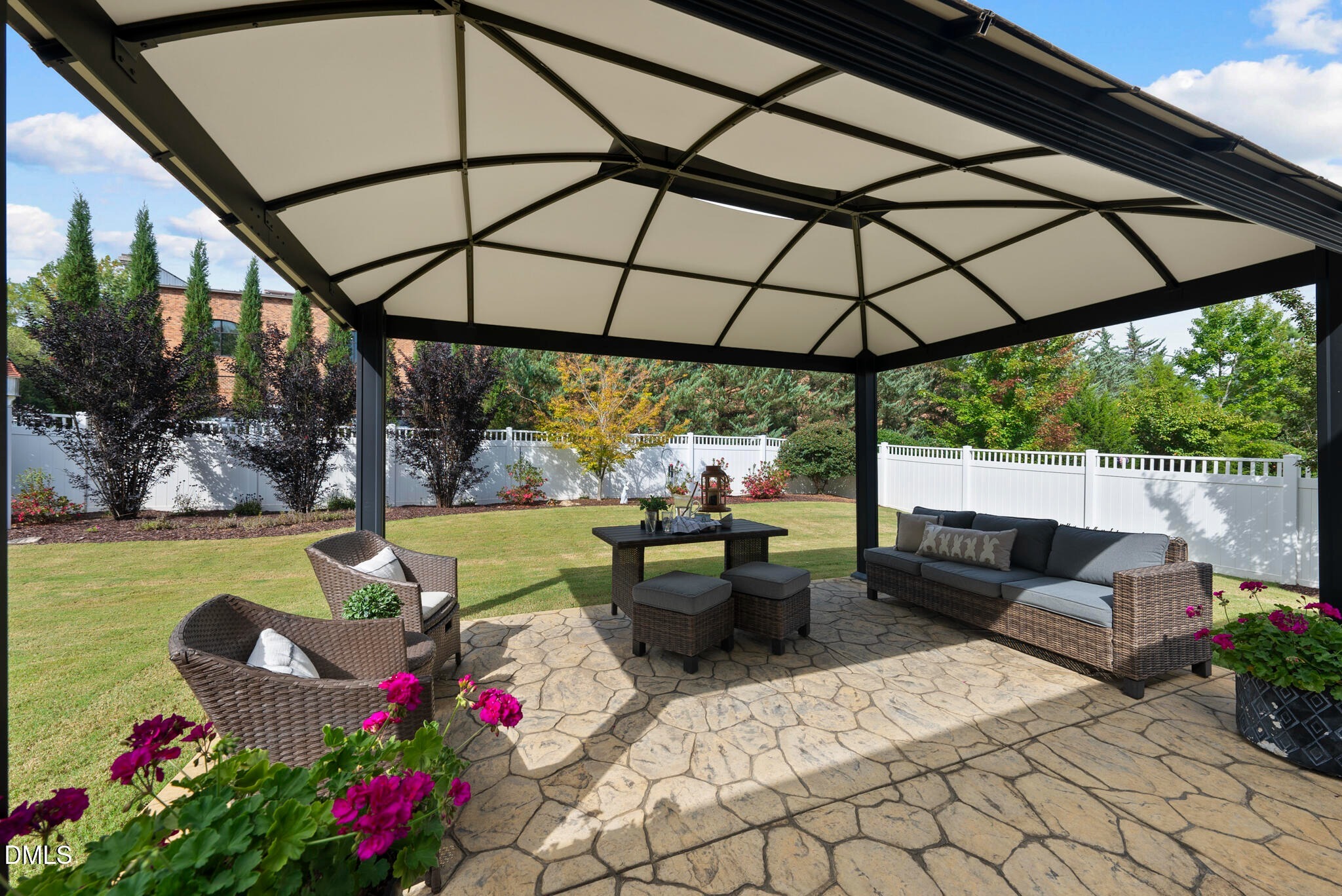 Welcome to this beautifully updated home in the desirable Traditions community of Wake Forest. Inside, an open and airy floor plan connects the family and dining rooms to the gourmet kitchen, where a large center island, granite countertops, stainless steel appliances, and custom cabinets with slide-out shelving create the perfect gathering space. A light-filled sunroom extends the living area and opens to the private backyard for year-round enjoyment. The spacious primary suite offers a relaxing retreat with tray ceilings, hardwood floors, and a spa-like bath featuring dual vanities, a walk-in closet, and a tiled aging-in-place shower. A first-floor guest bedroom with an adjacent full bath provides convenience and flexibility, while the upstairs loft and two additional bedrooms share a full bath. Outdoor living is equally impressive with a private patio, custom landscaping, retractable awning, 6-foot vinyl fence, and an in-ground sprinkler system. Paired with resort-style community amenities and a sought-after Wake Forest location, this home blends style, comfort, and everyday convenience.
