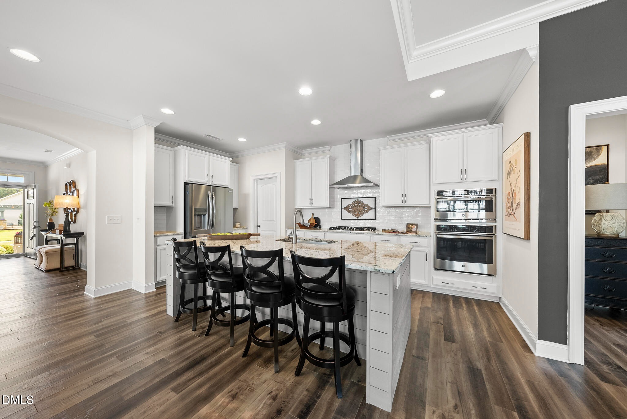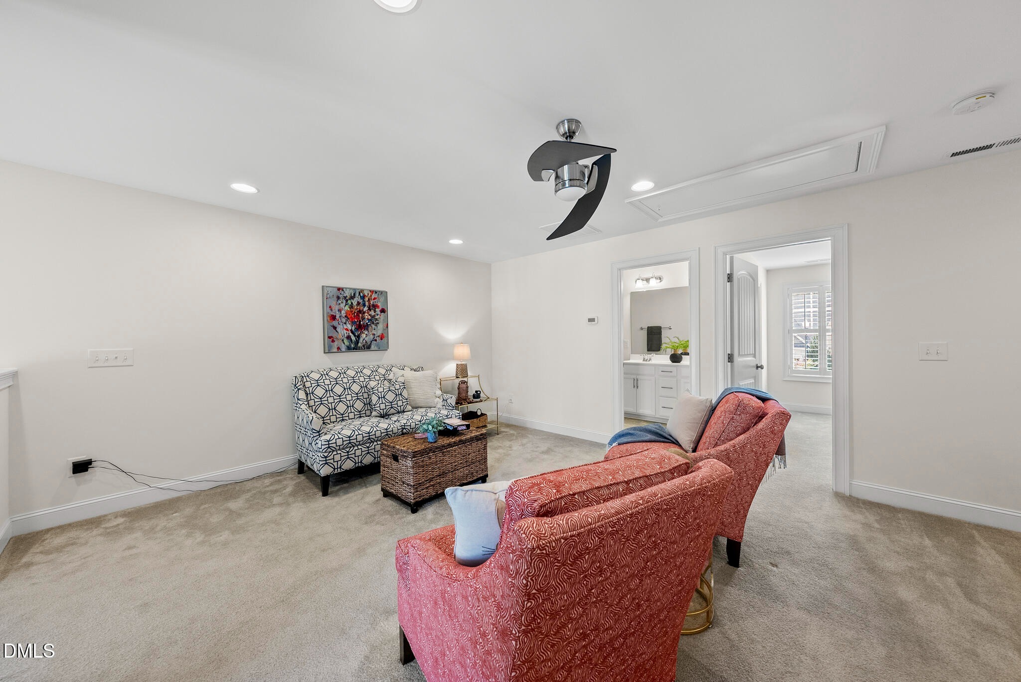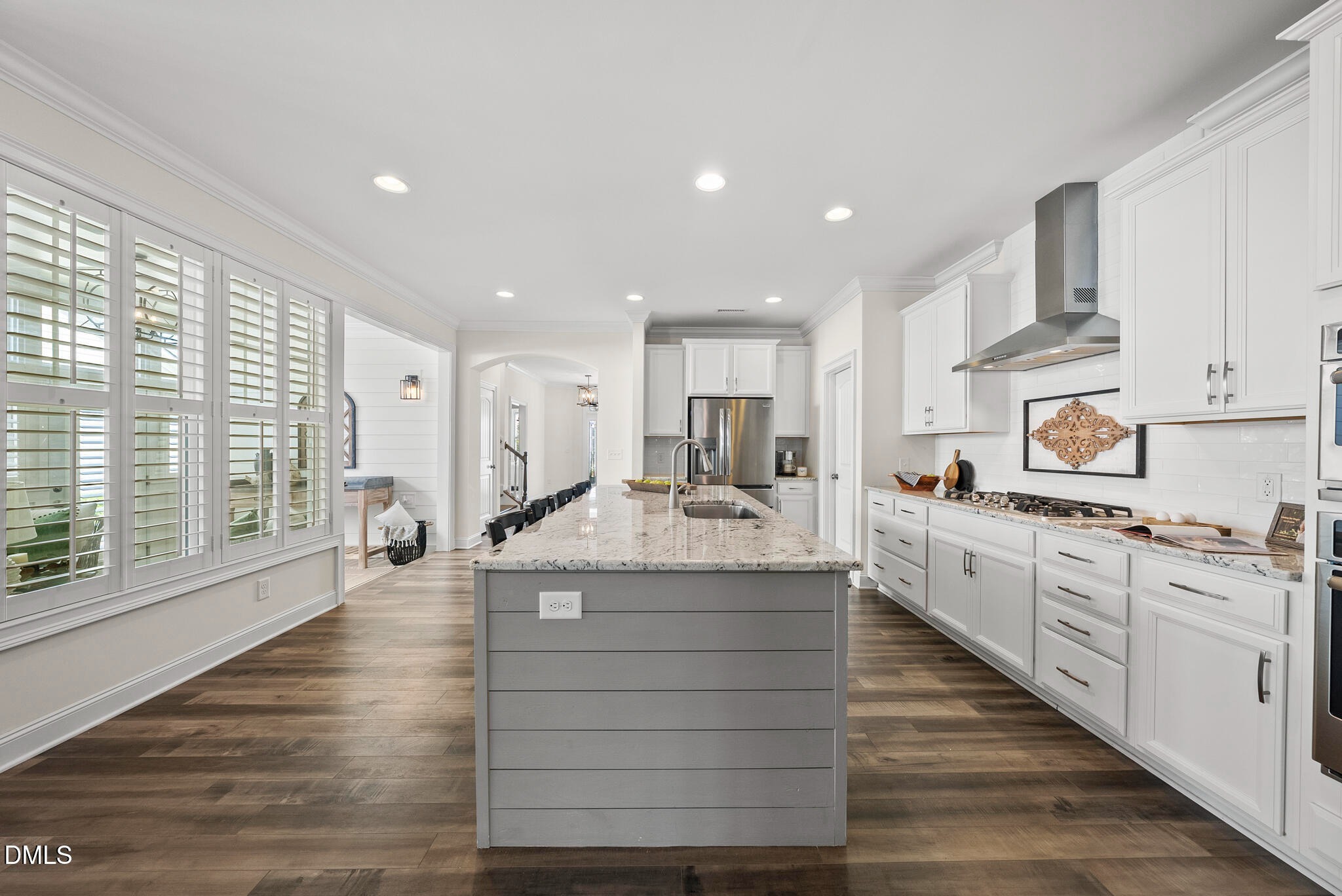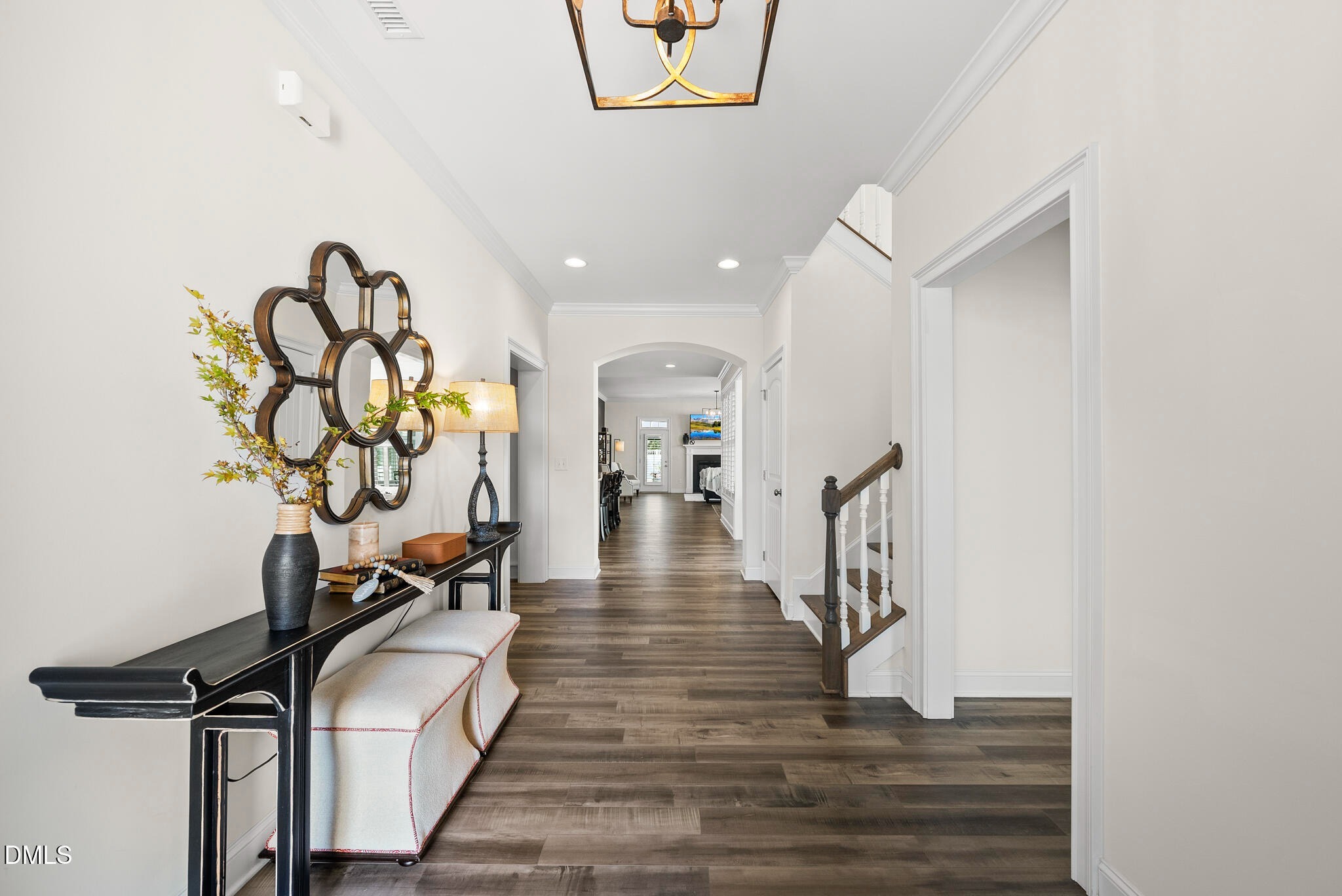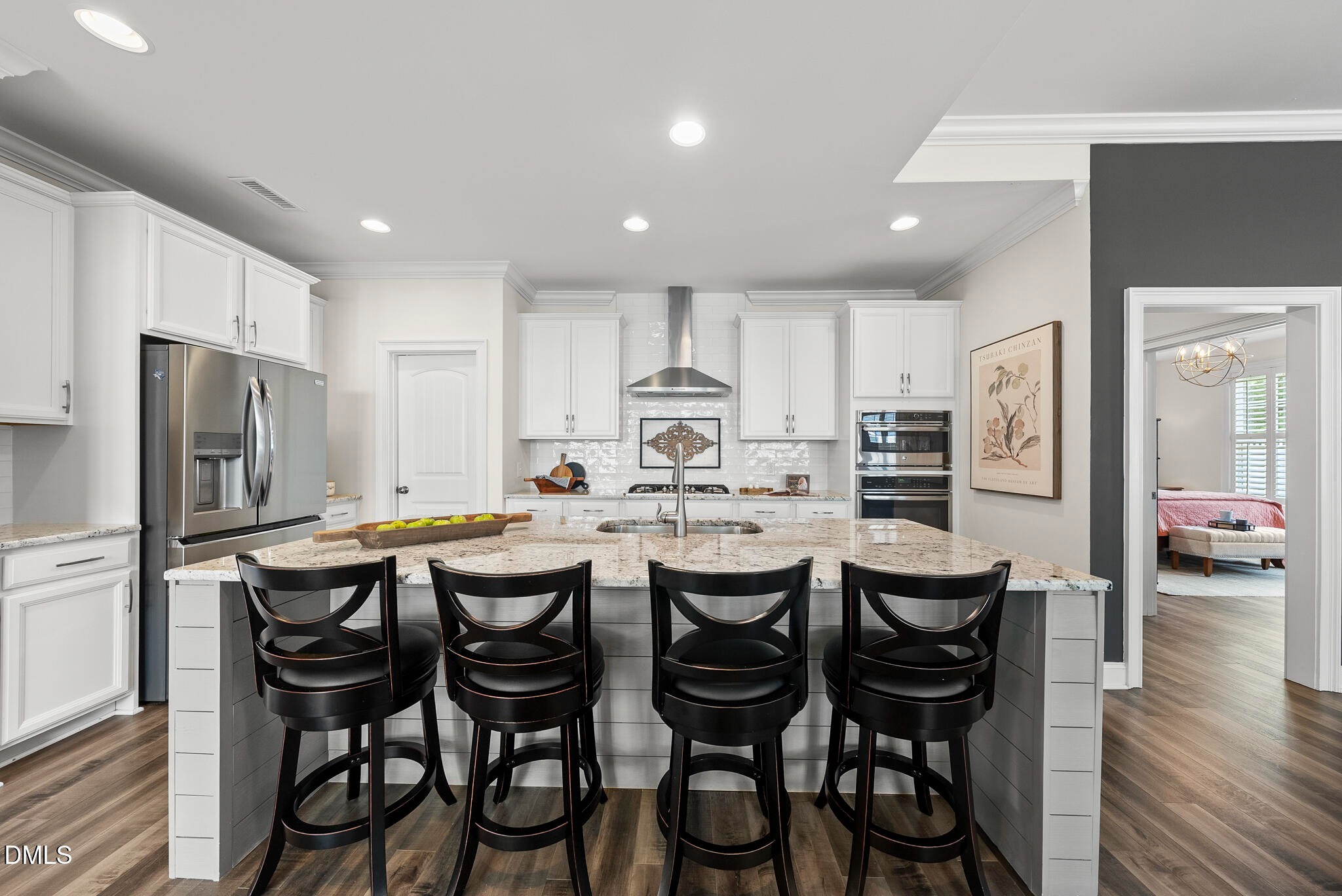 Welcome to this beautifully updated home in the desirable Traditions community of Wake Forest. Inside, an open and airy floor plan connects the family and dining rooms to the gourmet kitchen, where a large center island, granite countertops, stainless steel appliances, and custom cabinets with slide-out shelving create the perfect gathering space. A light-filled sunroom extends the living area and opens to the private backyard for year-round enjoyment. The spacious primary suite offers a relaxing retreat with tray ceilings, hardwood floors, and a spa-like bath featuring dual vanities, a walk-in closet, and a tiled aging-in-place shower. A first-floor guest bedroom with an adjacent full bath provides convenience and flexibility, while the upstairs loft and two additional bedrooms share a full bath. Outdoor living is equally impressive with a private patio, custom landscaping, retractable awning, 6-foot vinyl fence, and an in-ground sprinkler system. Paired with resort-style community amenities and a sought-after Wake Forest location, this home blends style, comfort, and everyday convenience.
